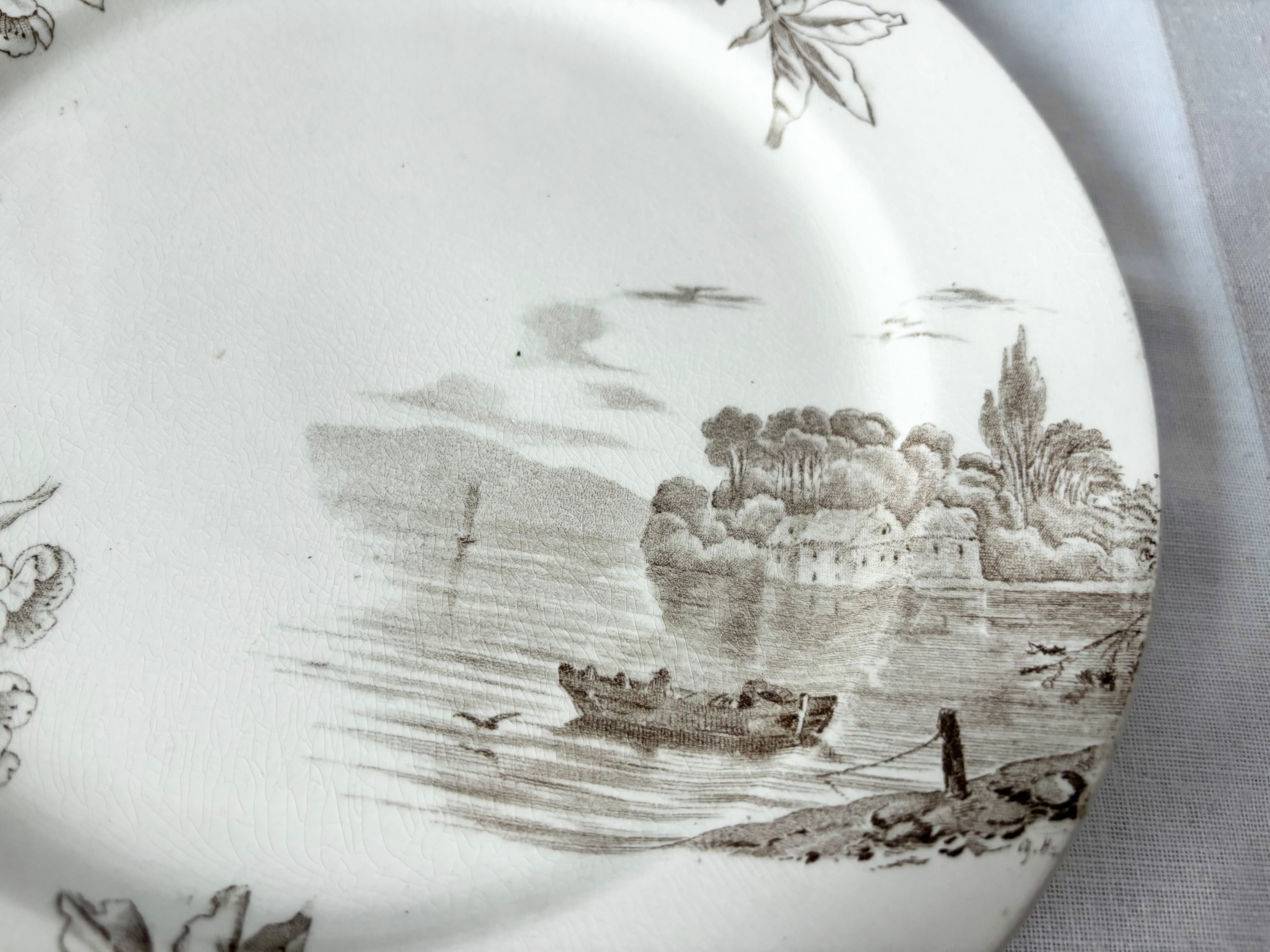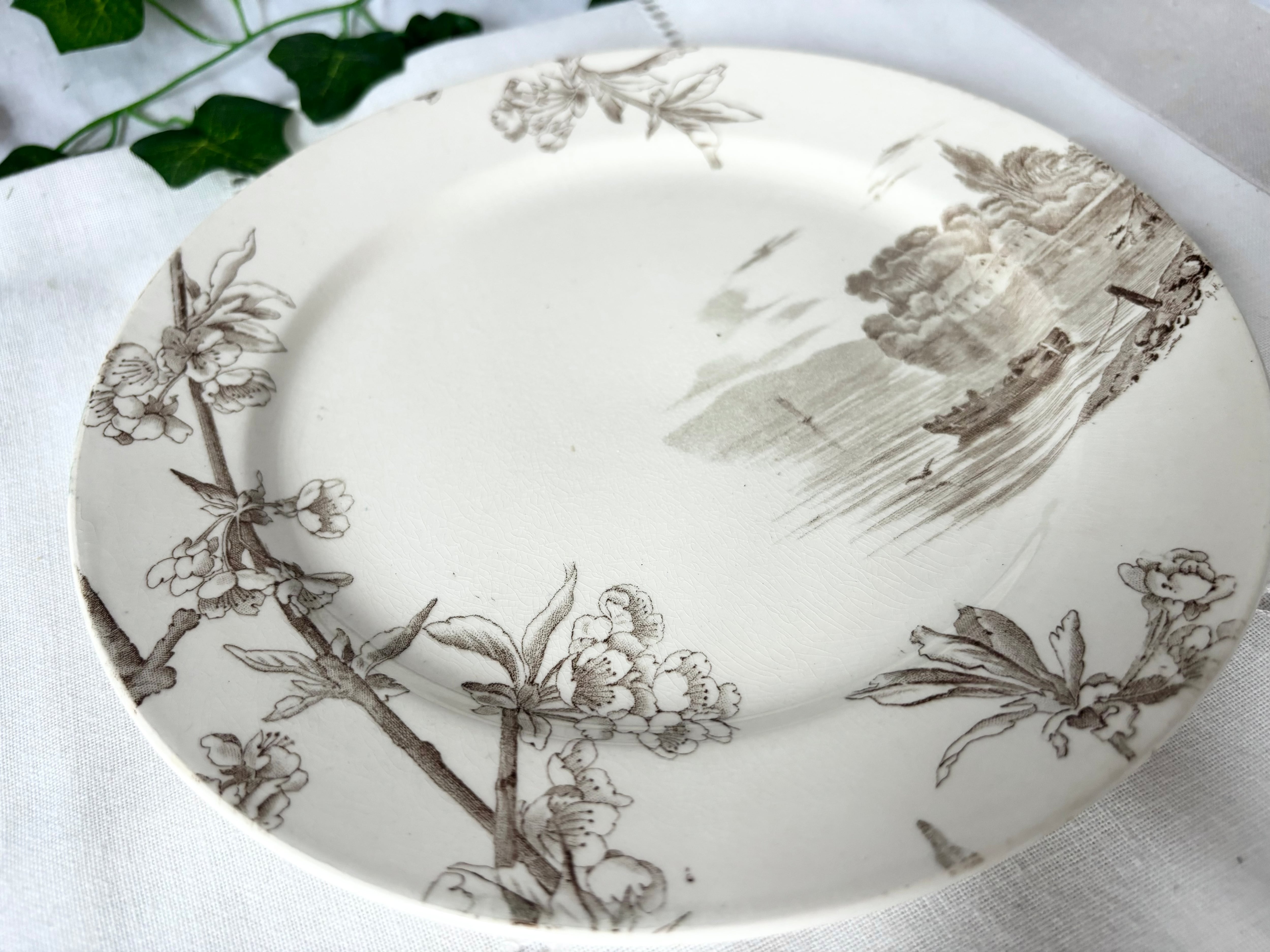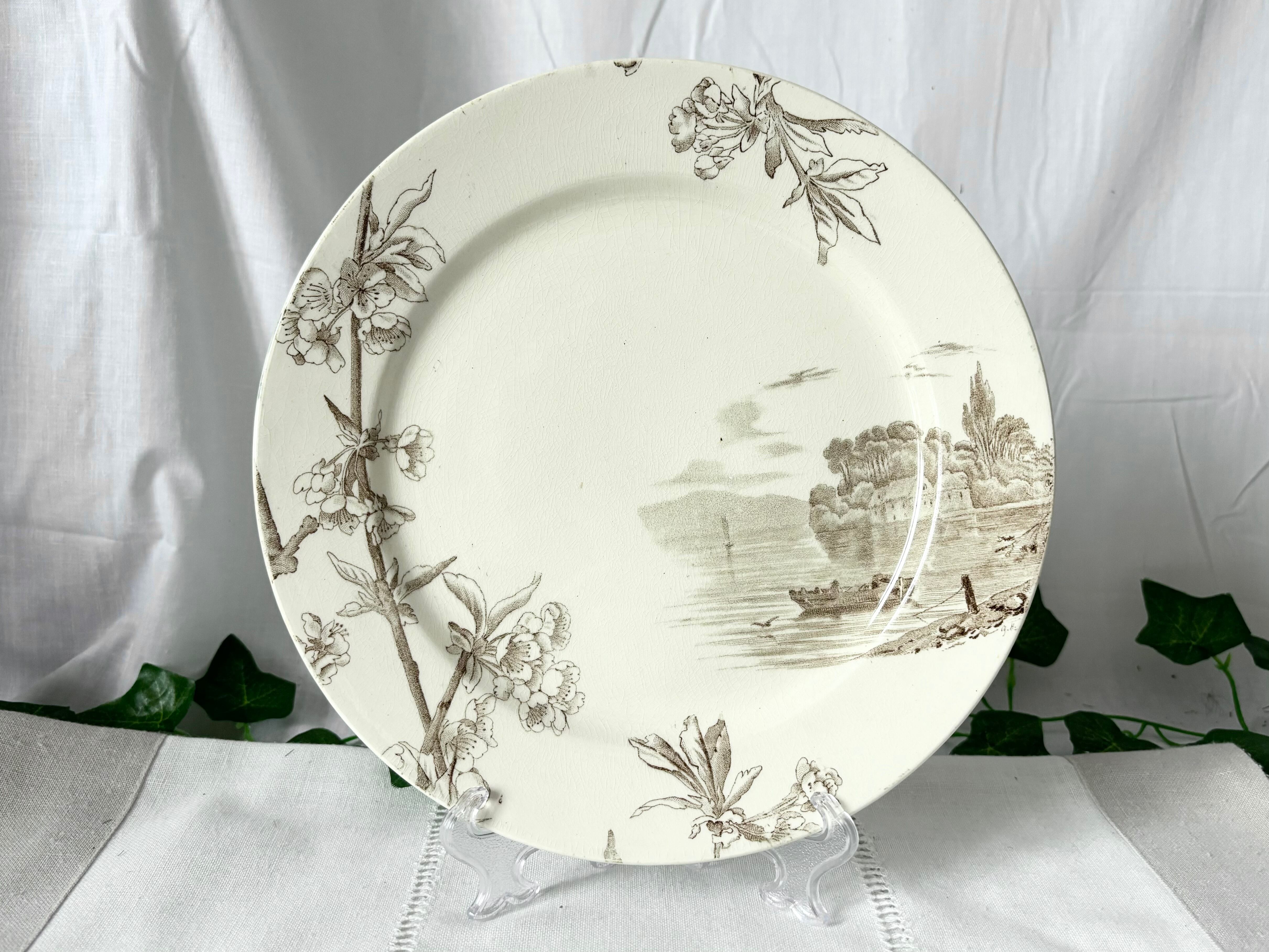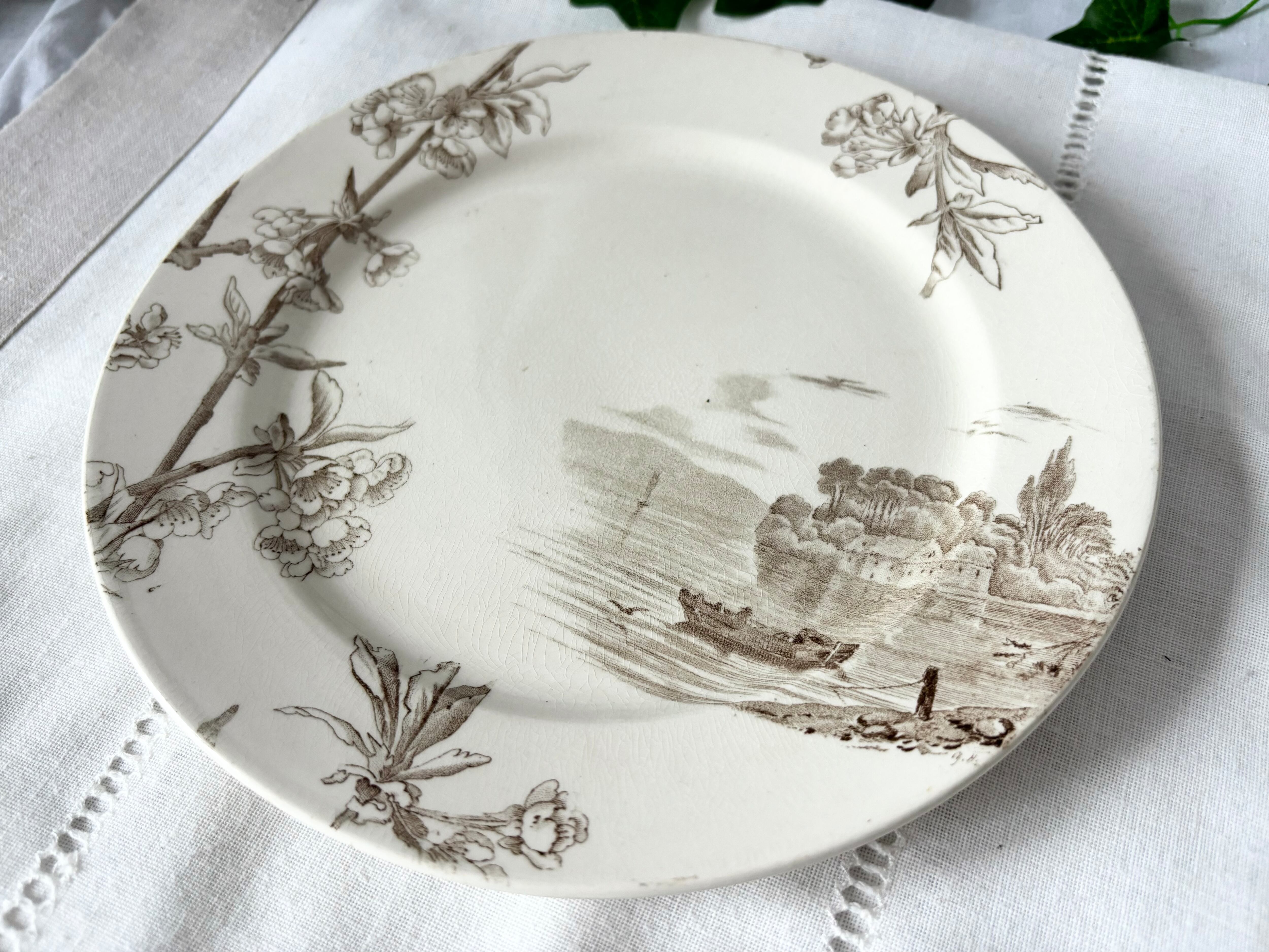19世紀末のフランス、Creil et MontereauのCERISIER(桜)シリーズより、ブラウンのディナープレートをご紹介いたします。