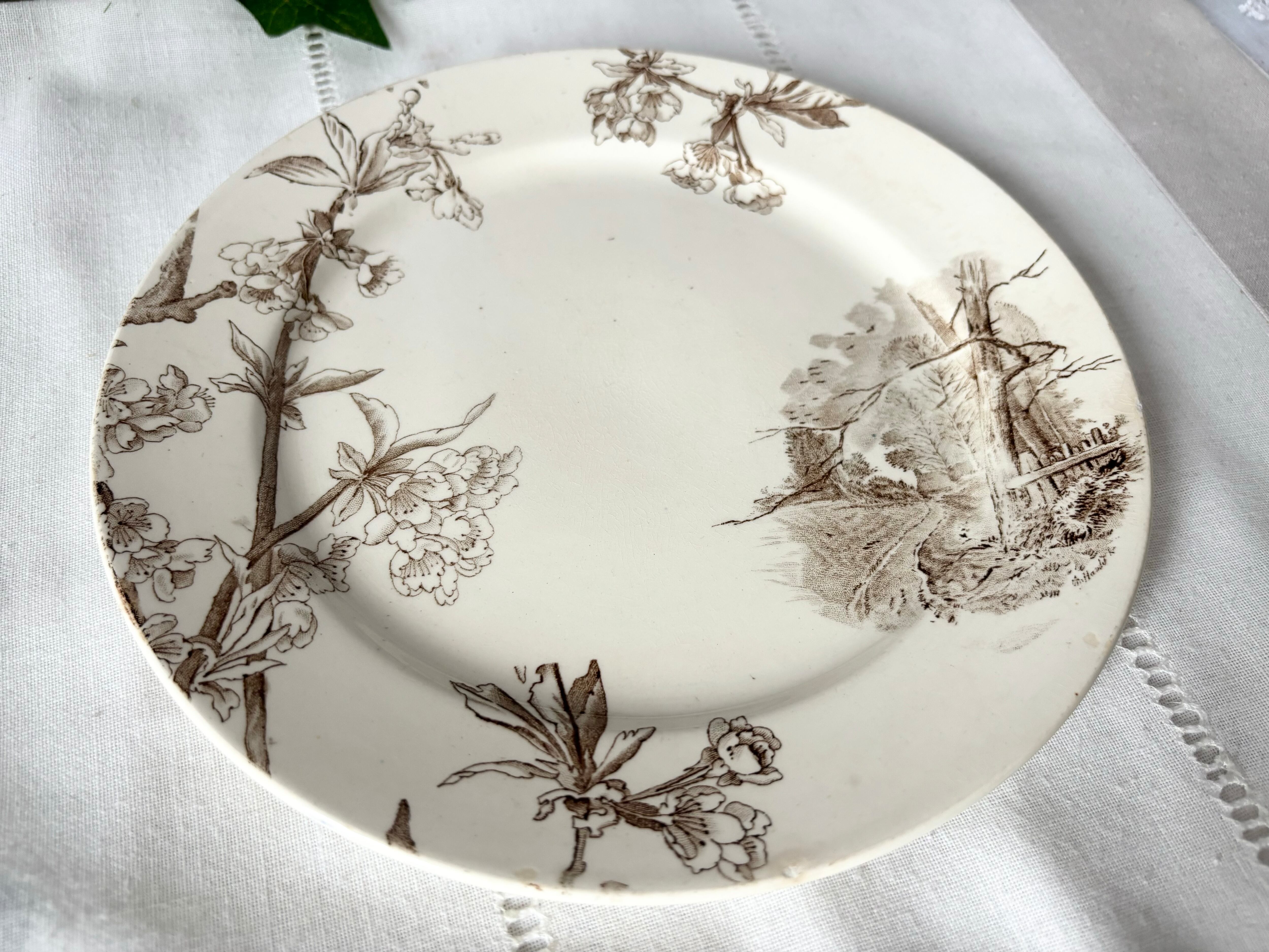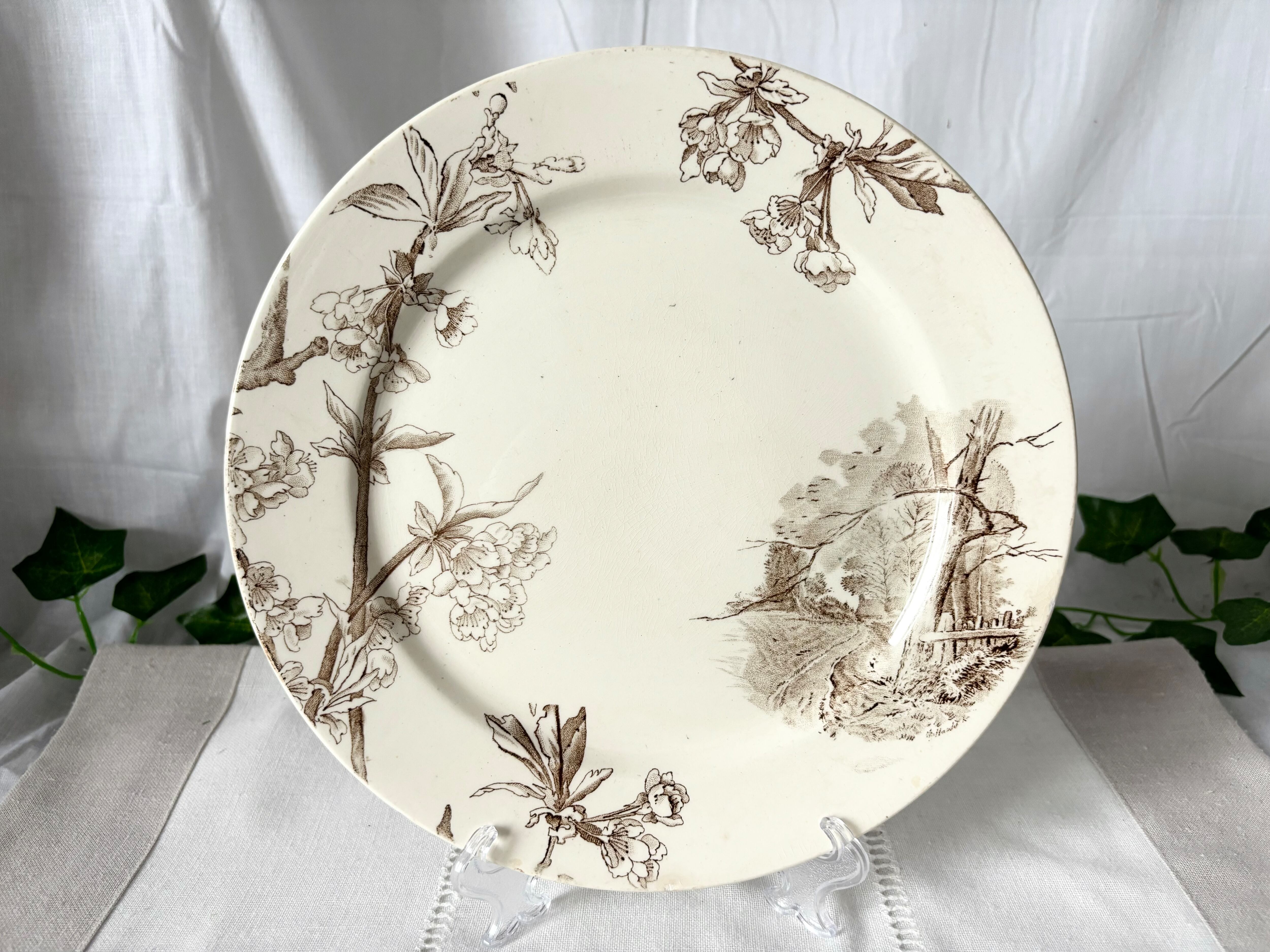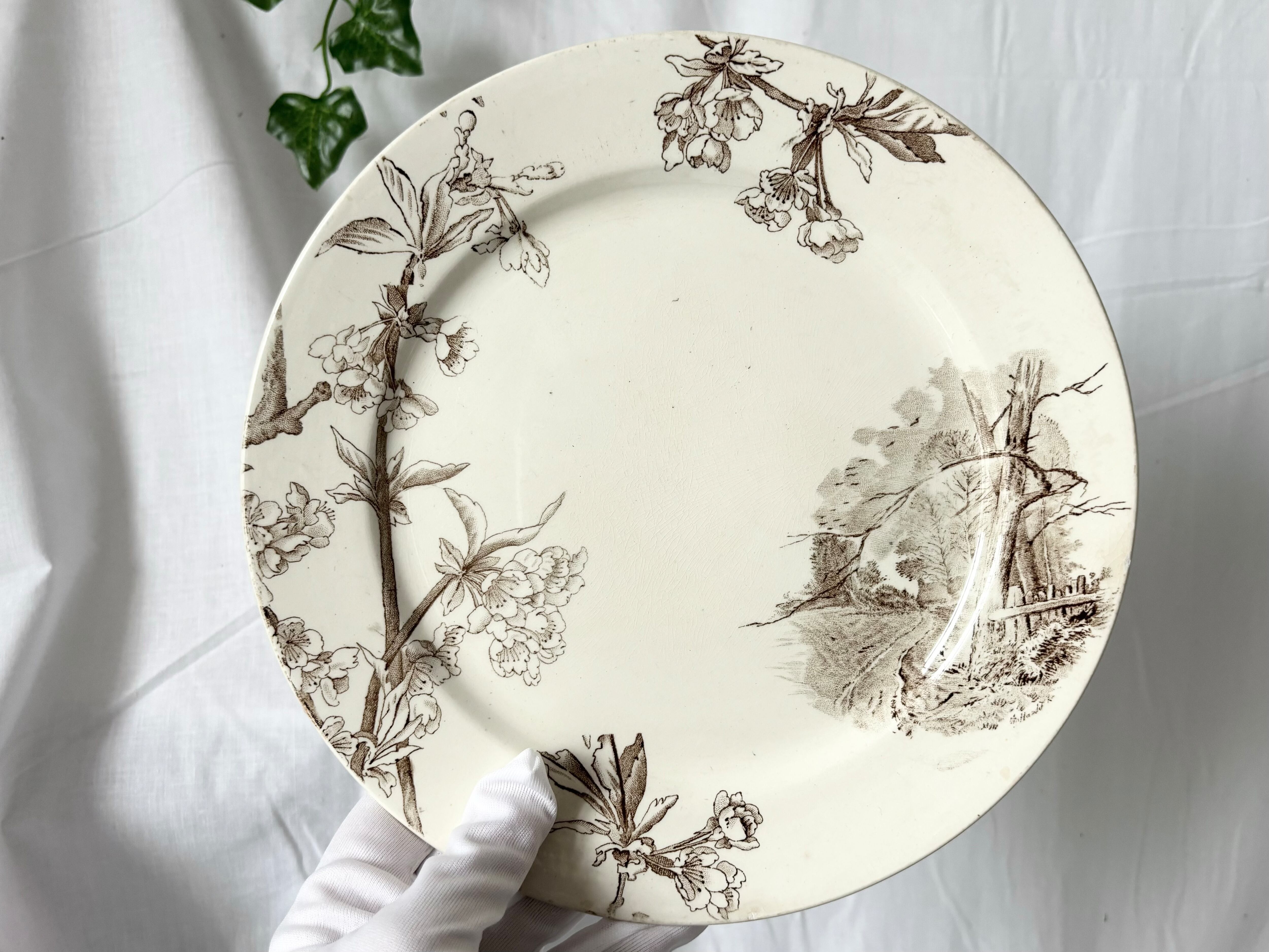 19世紀末のフランス、Creil et MontereauのCERISIER(桜)シリーズより、ブラウンのディナープレートをご紹介いたします。