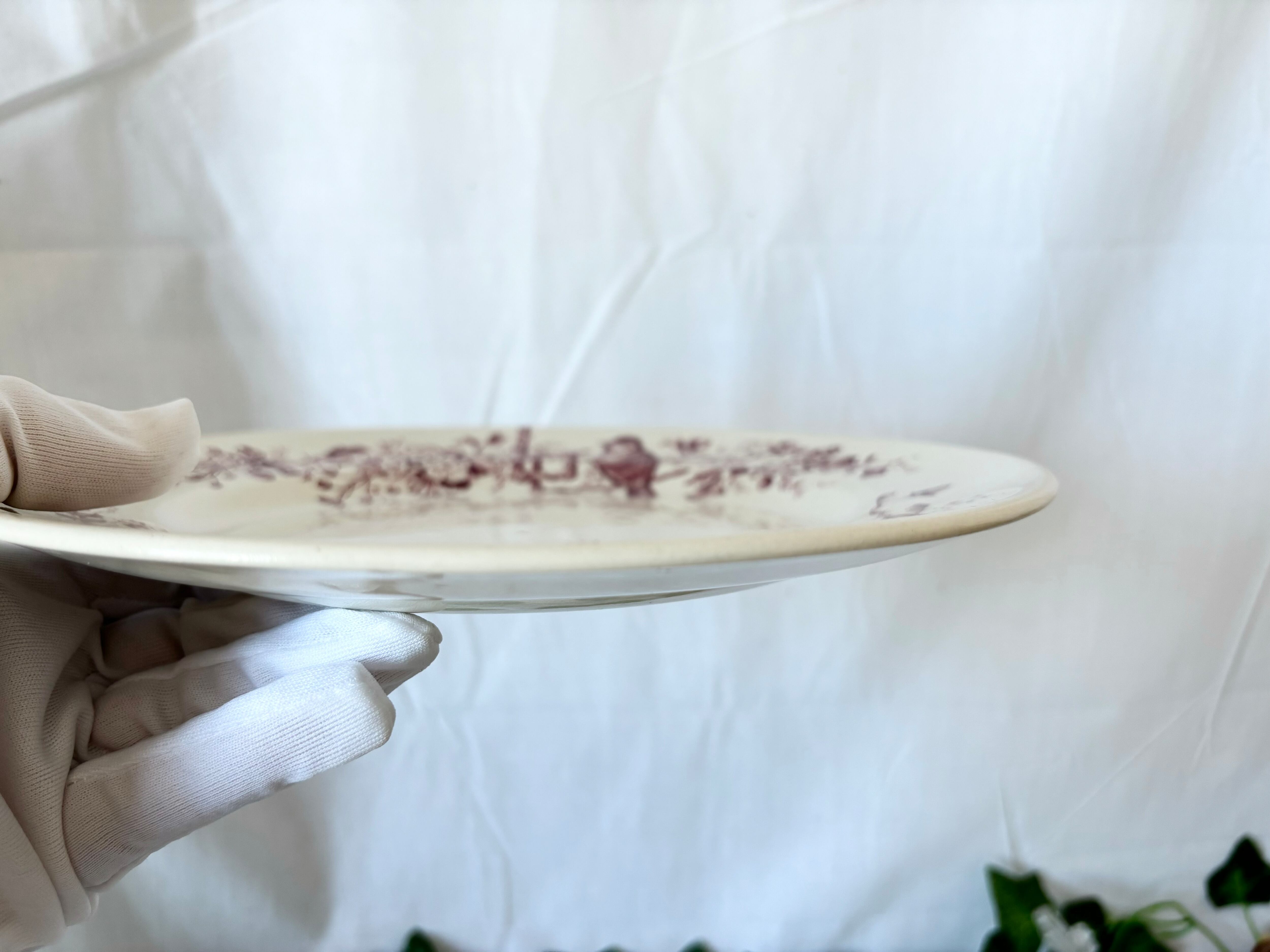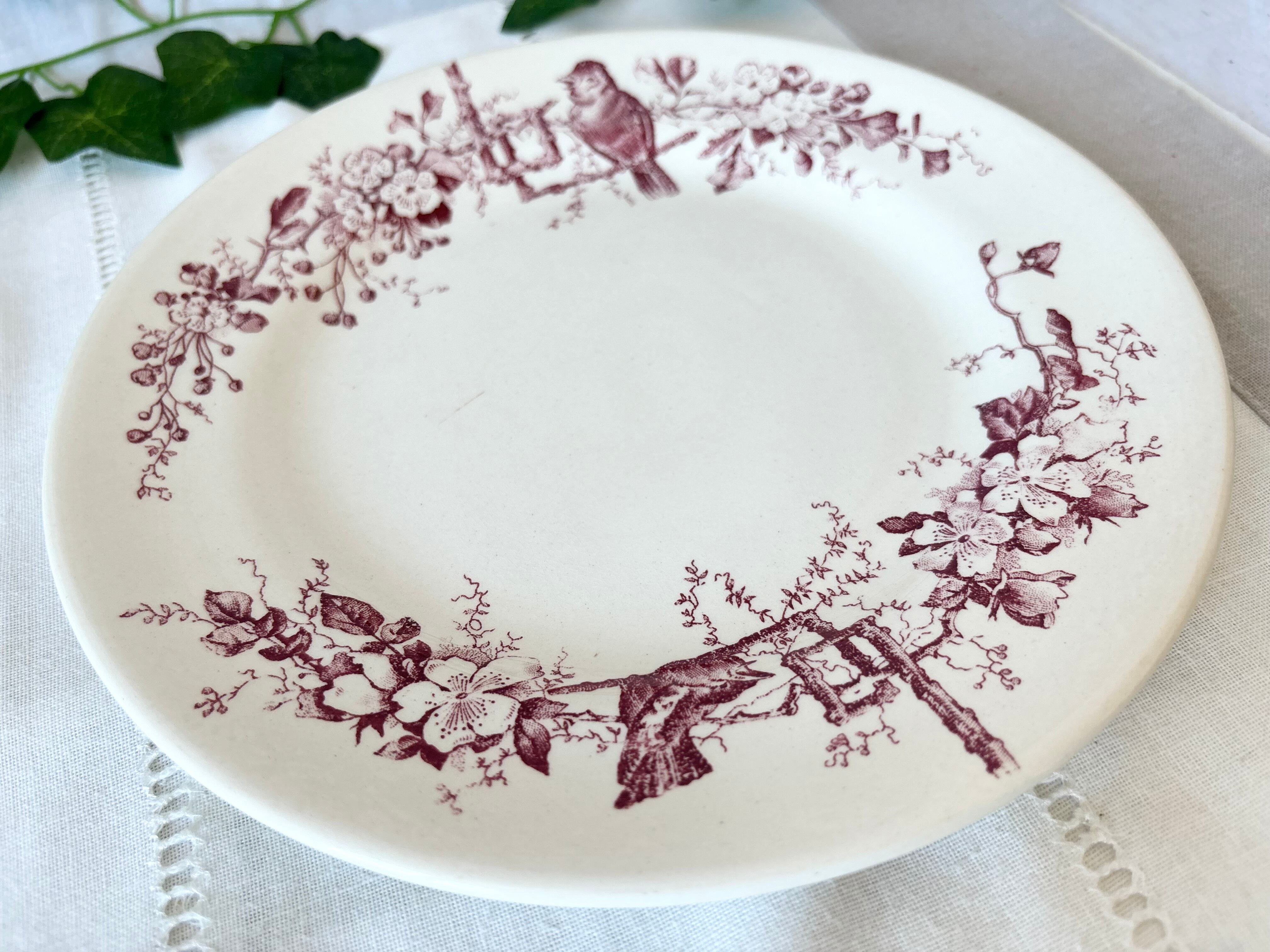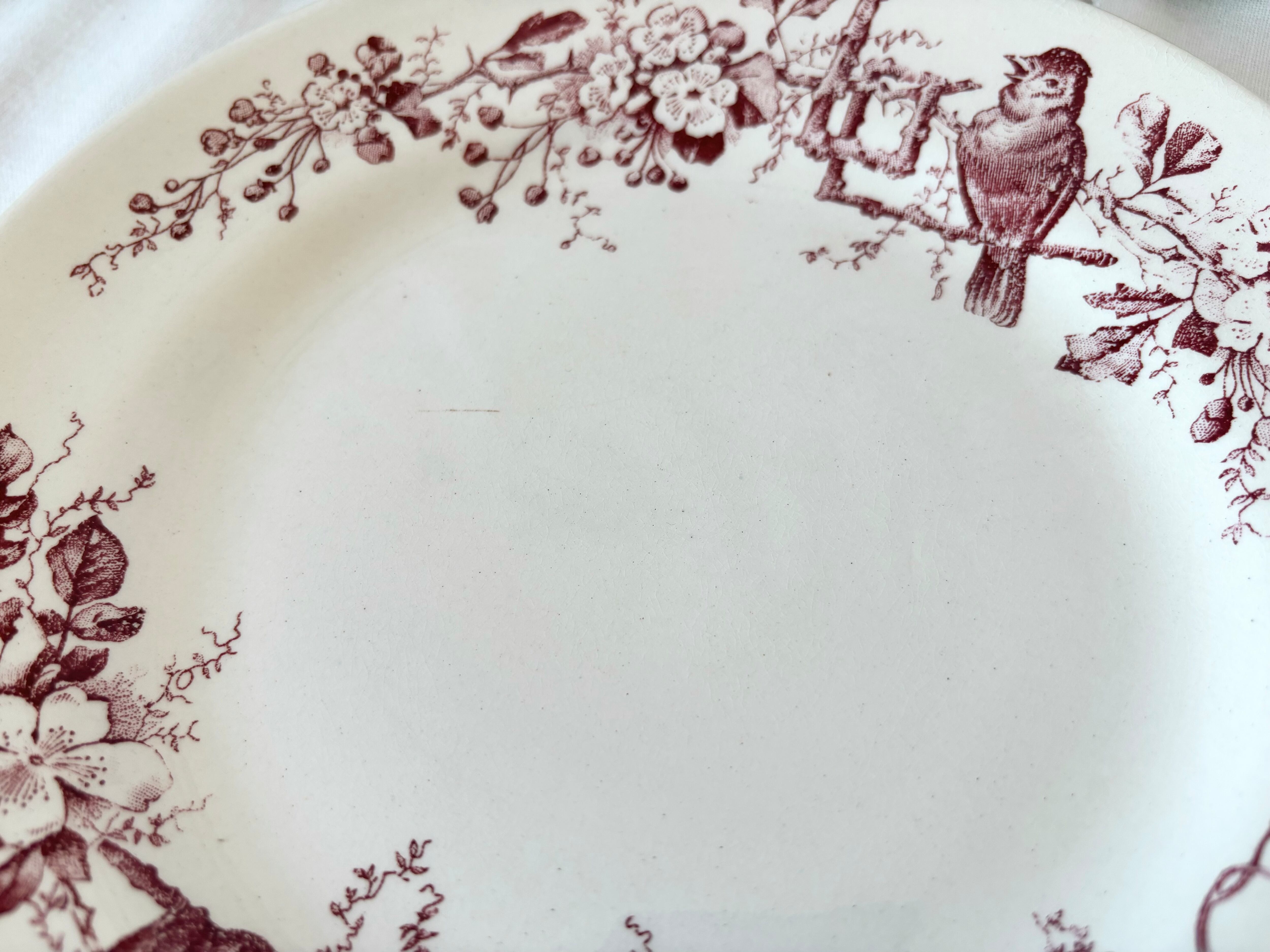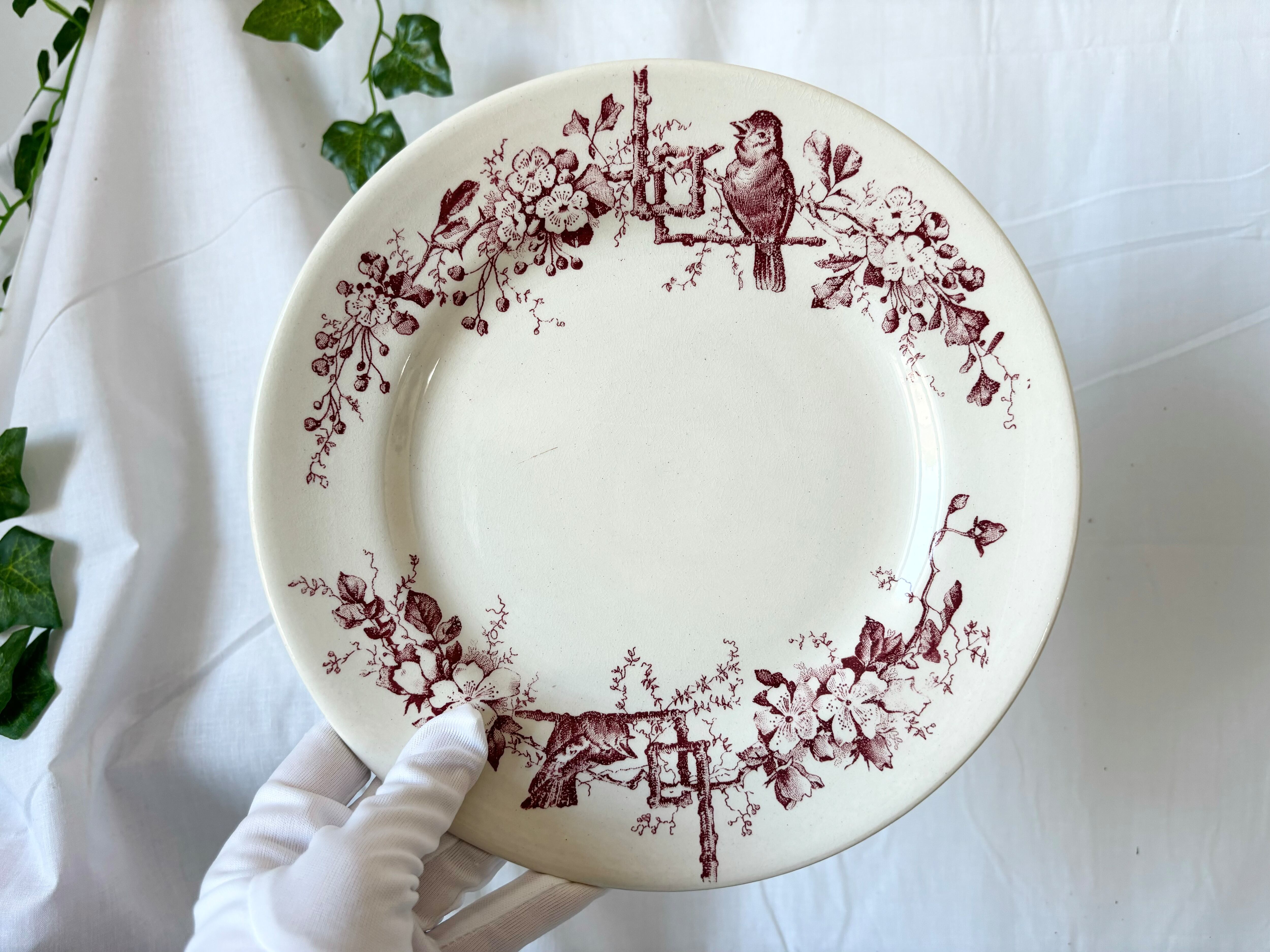 A: Grand Dépôt E. BOURGEOIS / France / 赤い小鳥 のディナープレート / フランス / アンティーク /