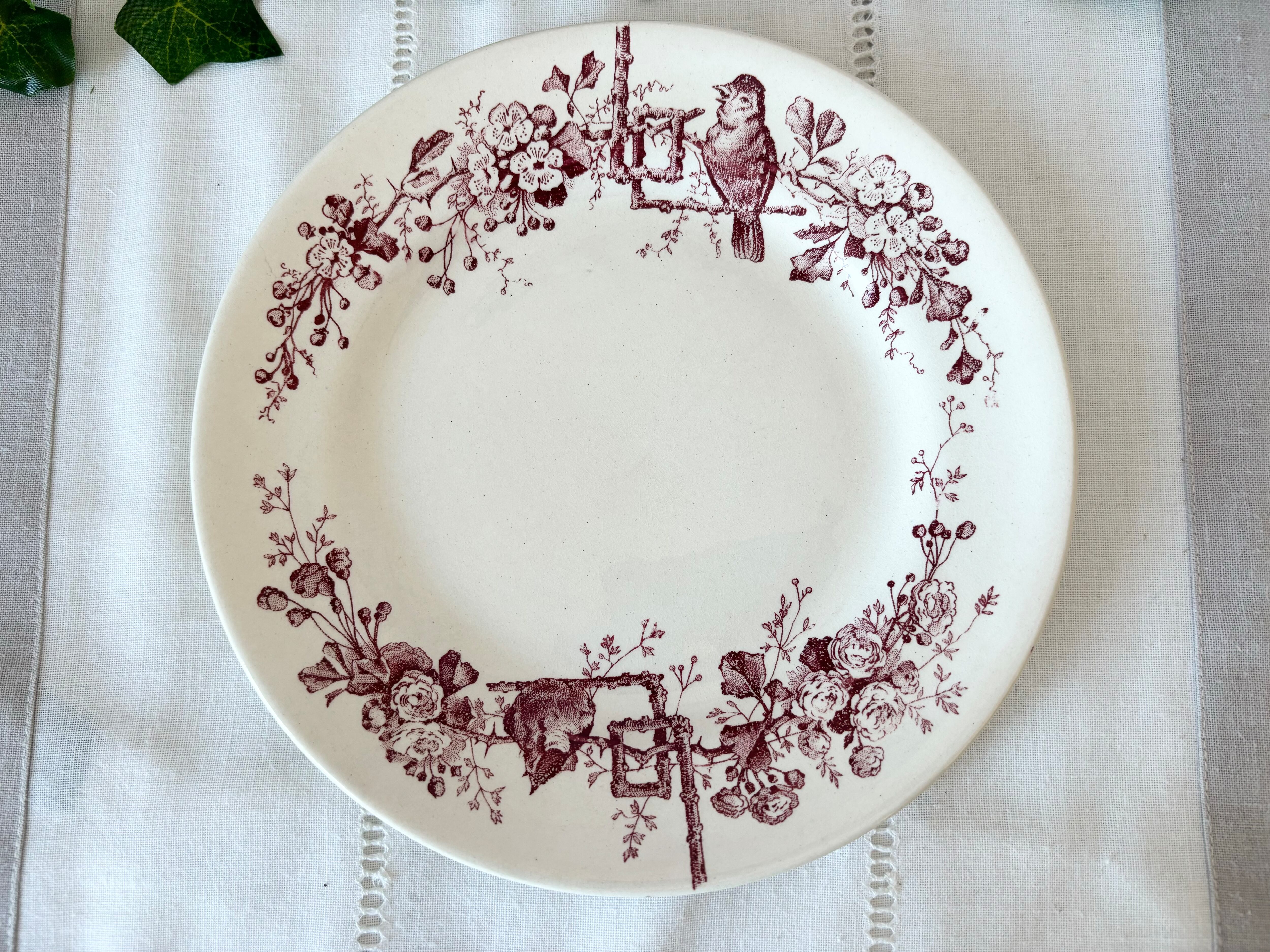 B: Grand Dépôt E. BOURGEOIS / France / 赤い小鳥 のディナープレート / フランス / アンティーク /
