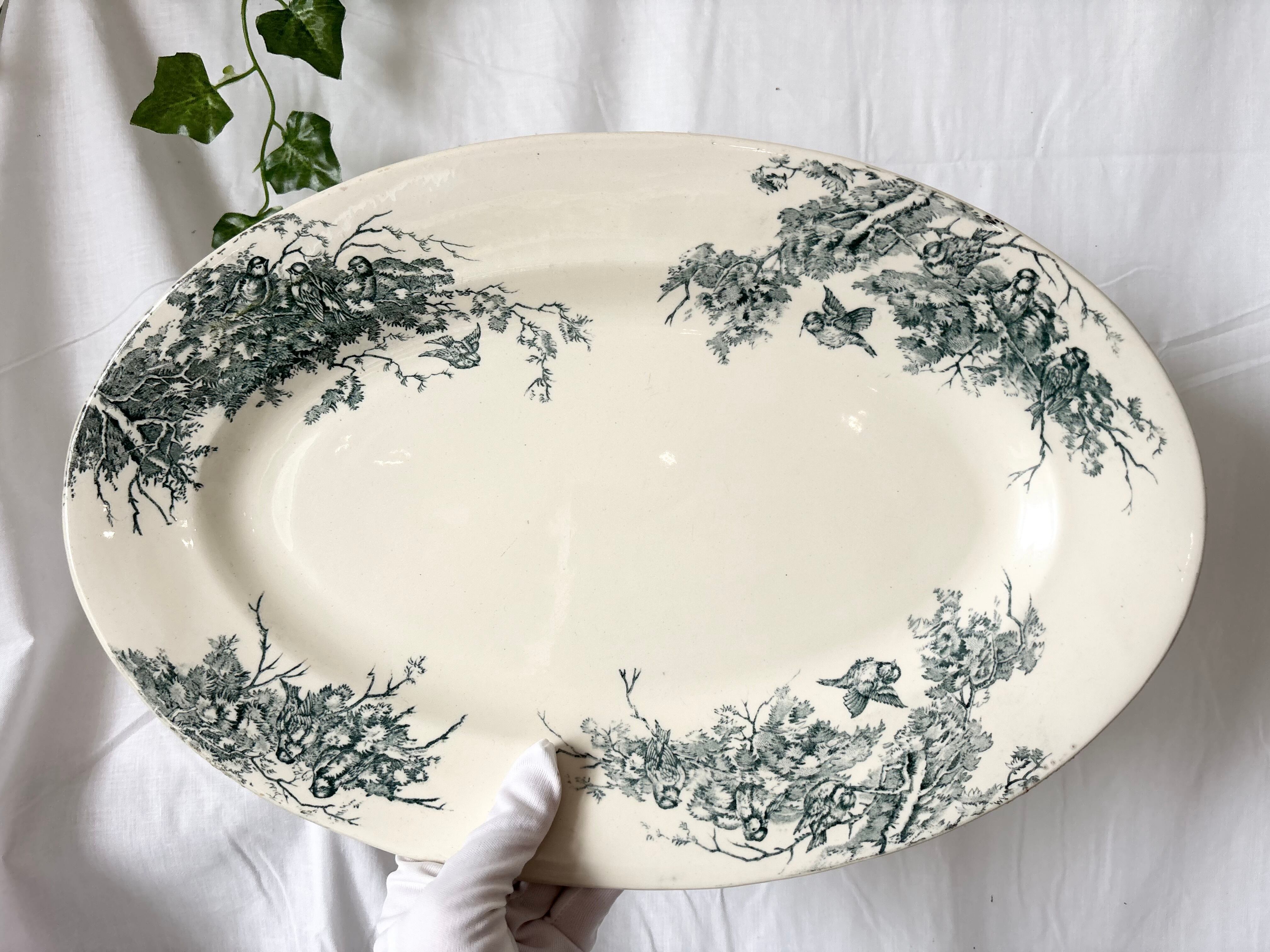 L size (刻印無し)/ テールドフェール / Linottes / SALINS / オーバルプレート / 19 century antique / France / bird /サラン / フランス アンティーク