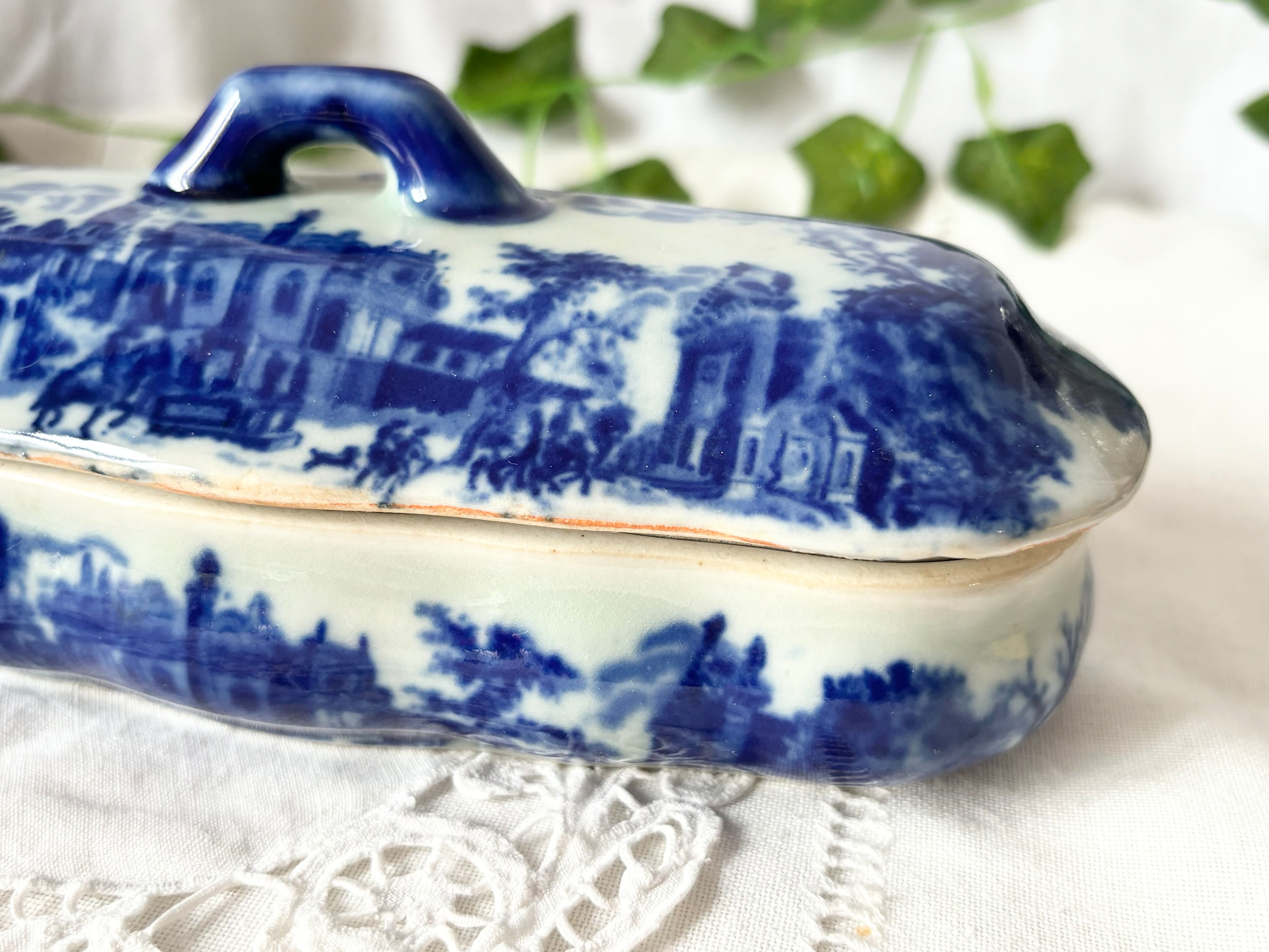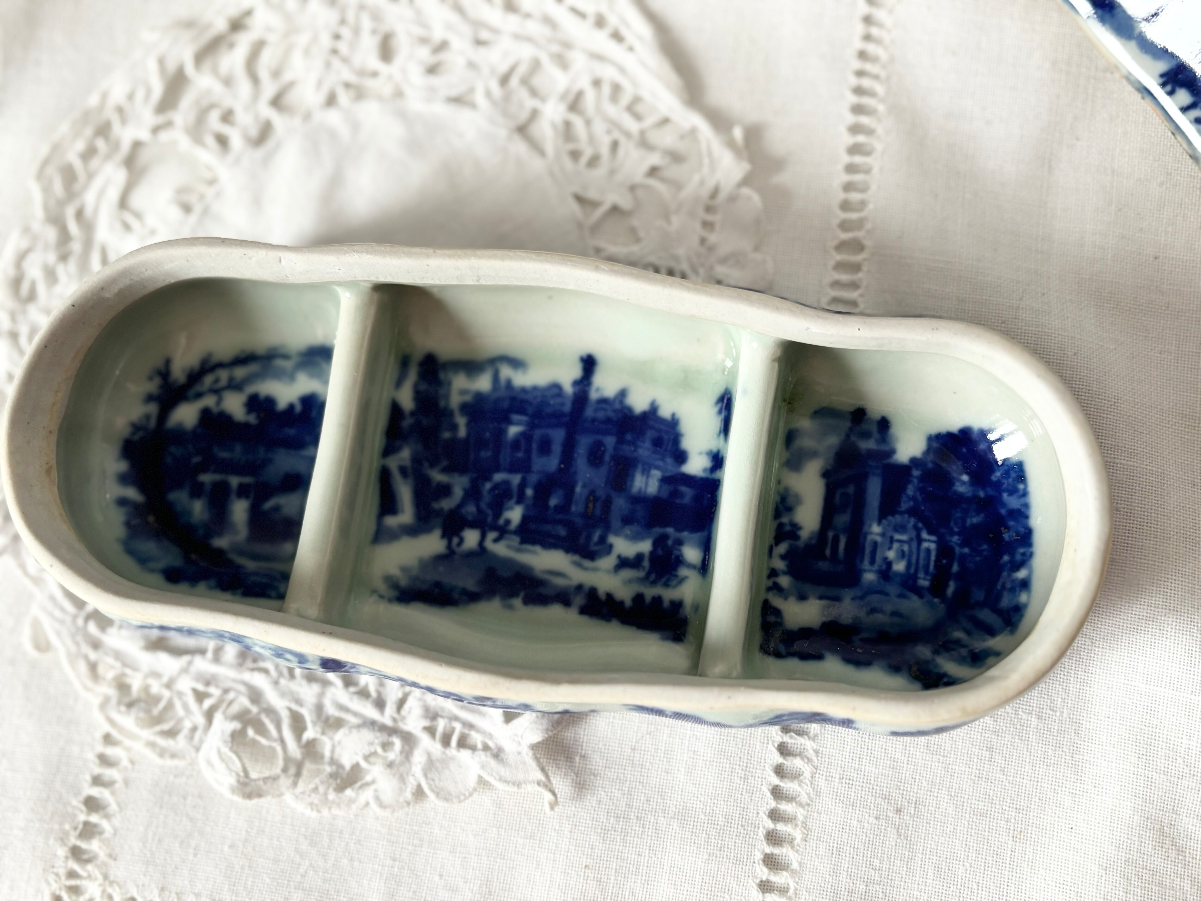 Victoria Ware / Ironstone / 仕切り付の小物入れ / flow blue / イギリス / ビンテージ / アンティーク