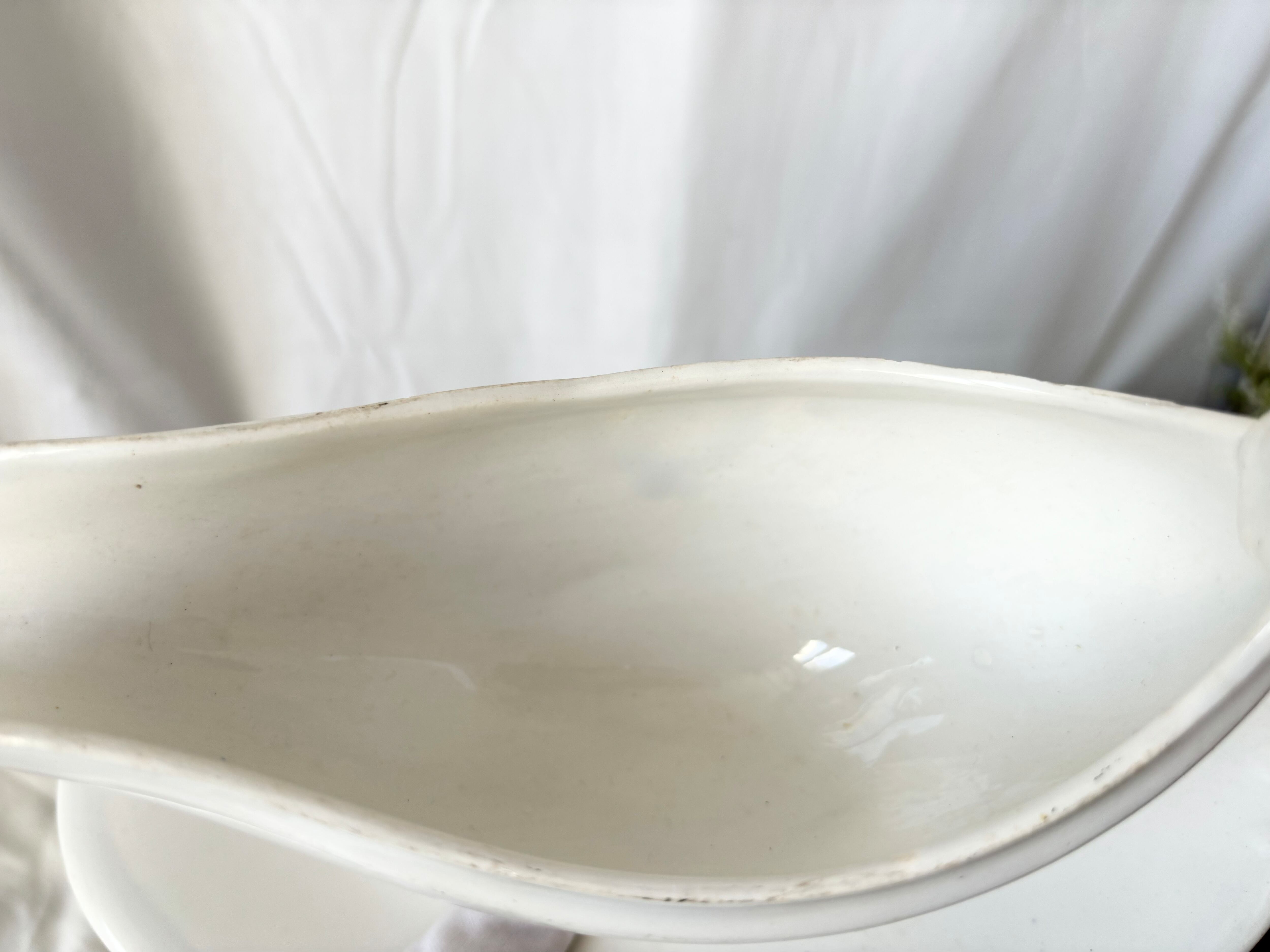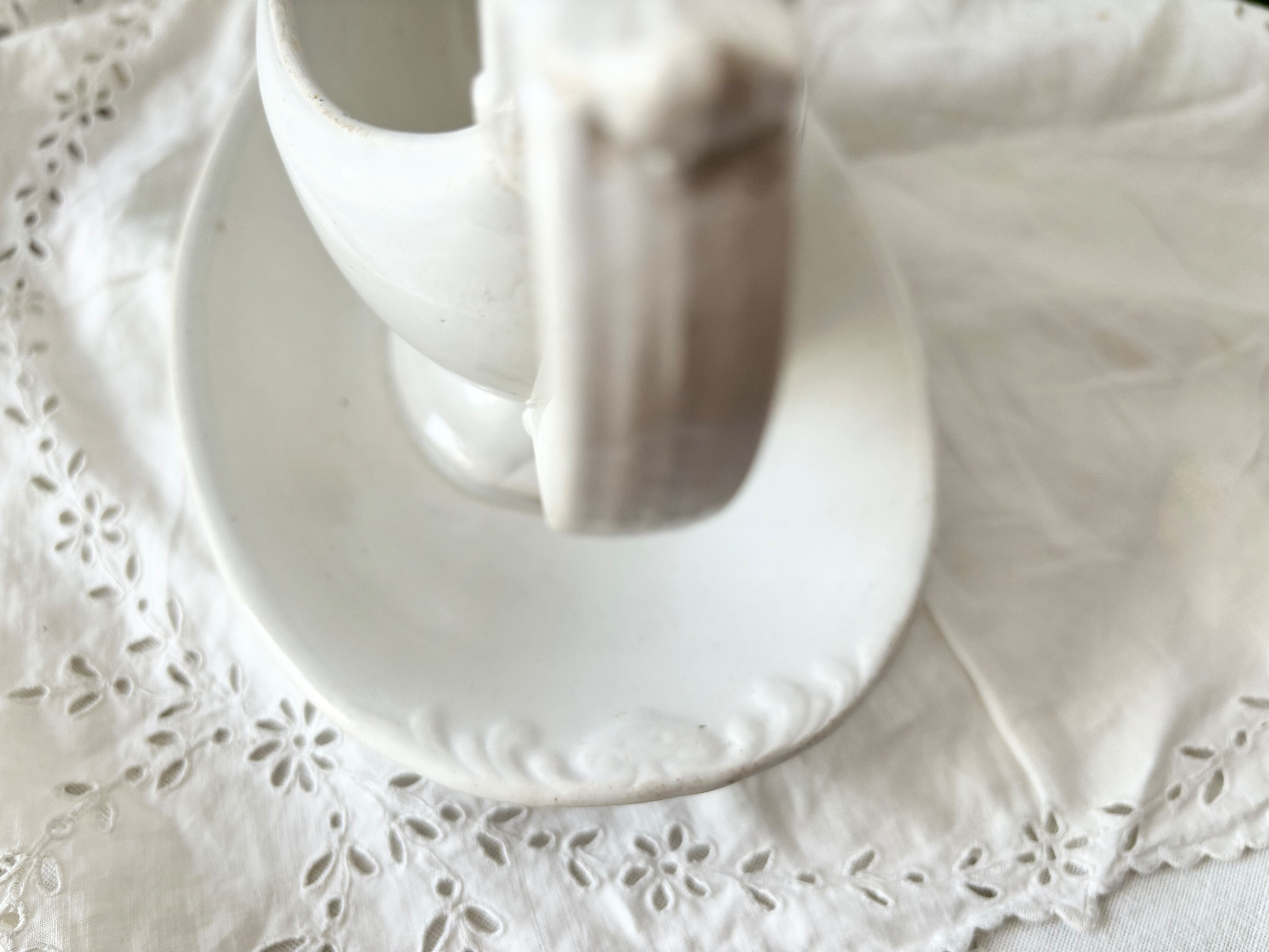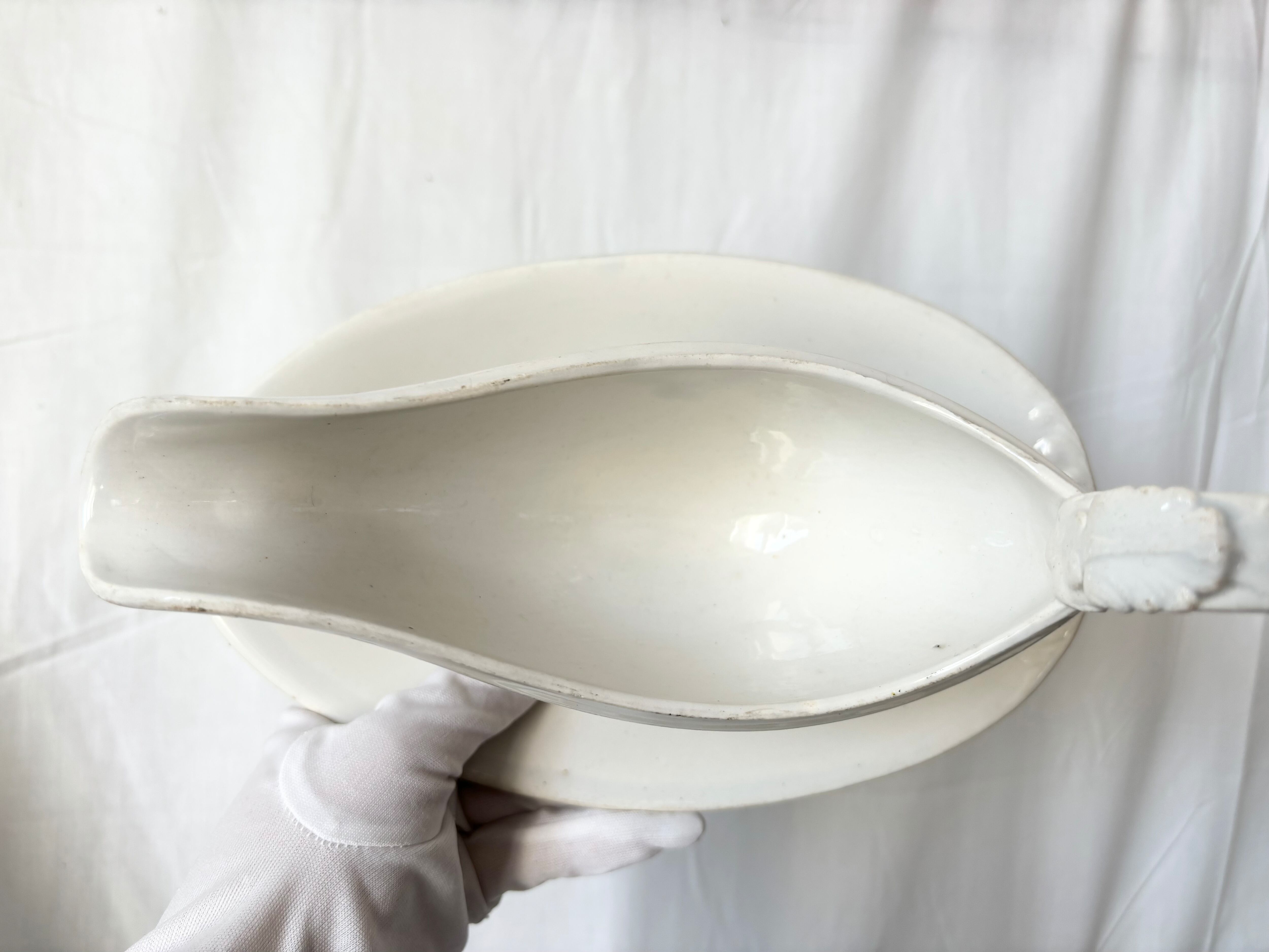 クレイユエモントロー / 白鳥ハンドルの白いソーシエール / depose / 19世紀フレンチ /アンティーク