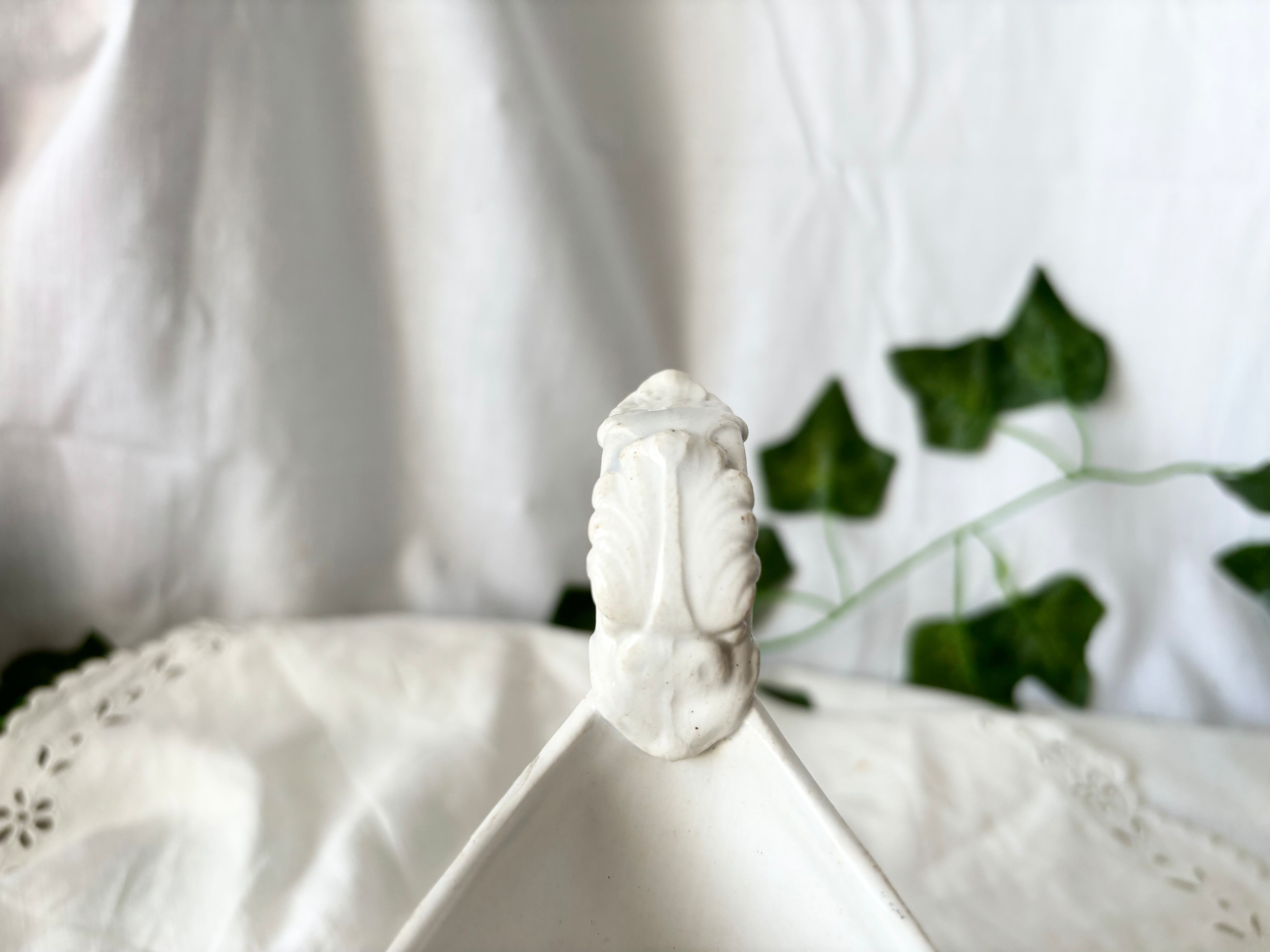 シンプルな白にカーブの美しさと彫刻が映える逸品です。ハンドル部分が白鳥デザインで、エレガントなアールヌーボーのスタイルです。