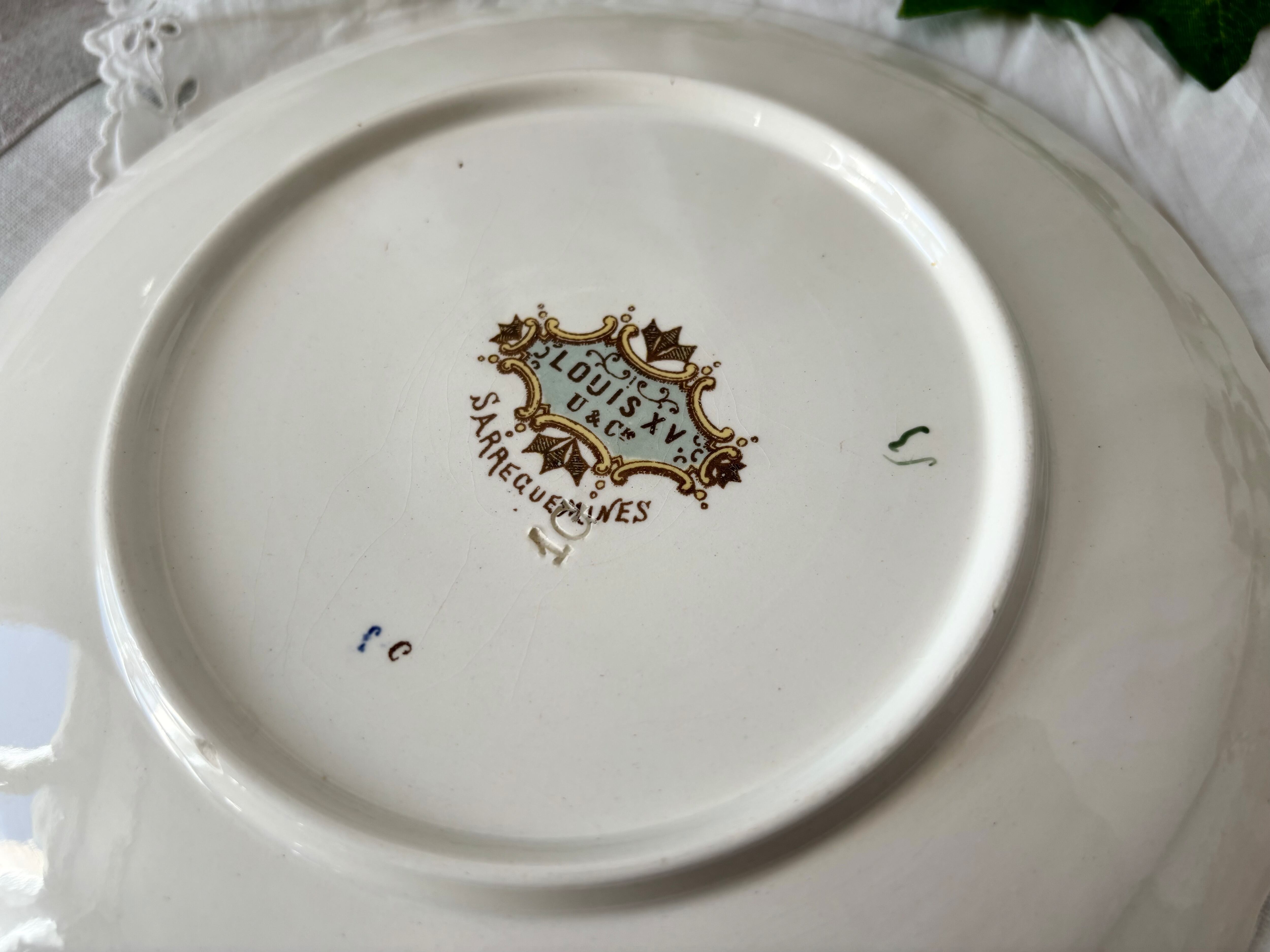 20世紀の初頭のフランスより、Sarreguemines (サルグミンヌ)、Louis XVシリーズの21.5cmの平皿をご紹介いたします。