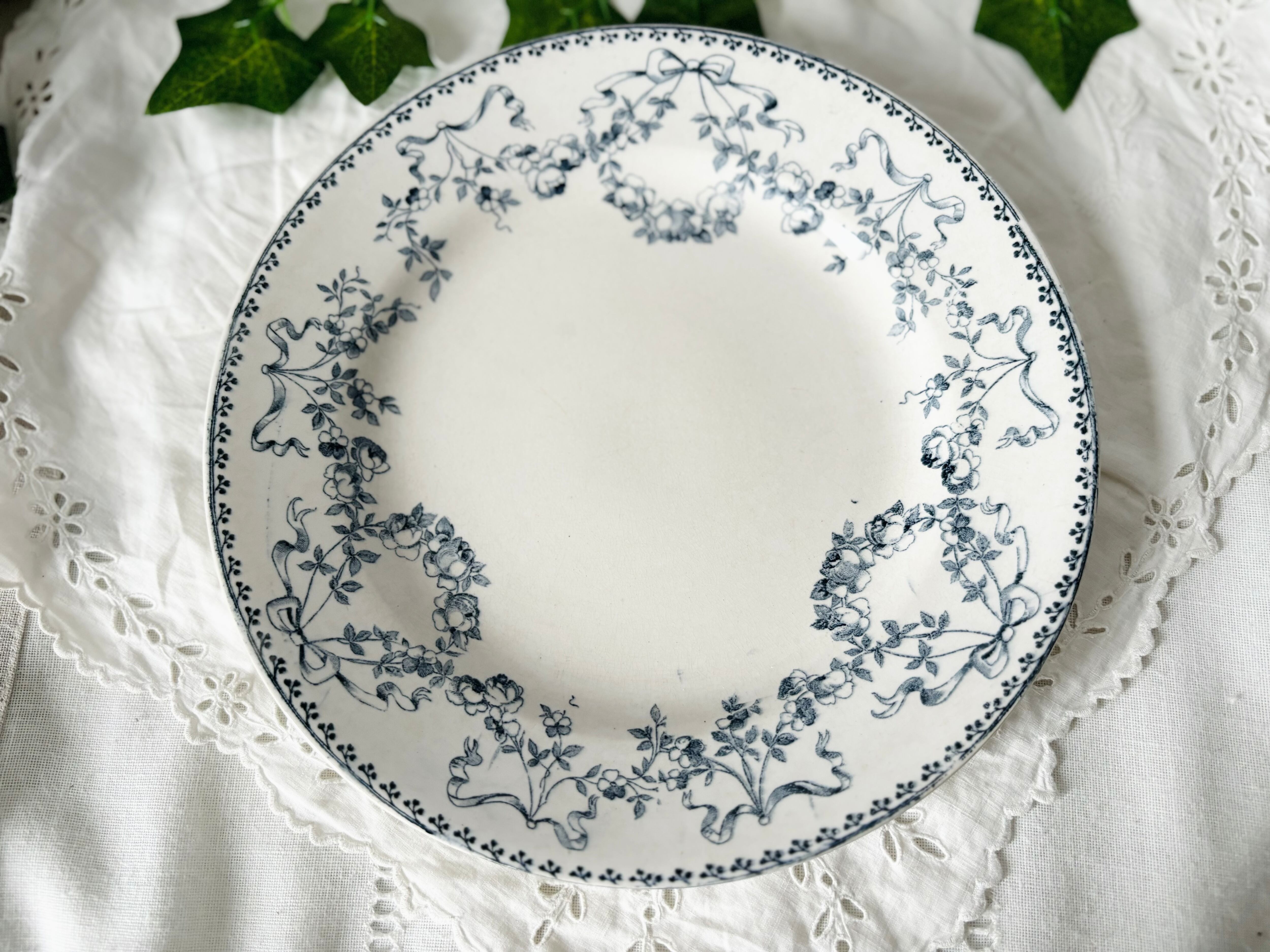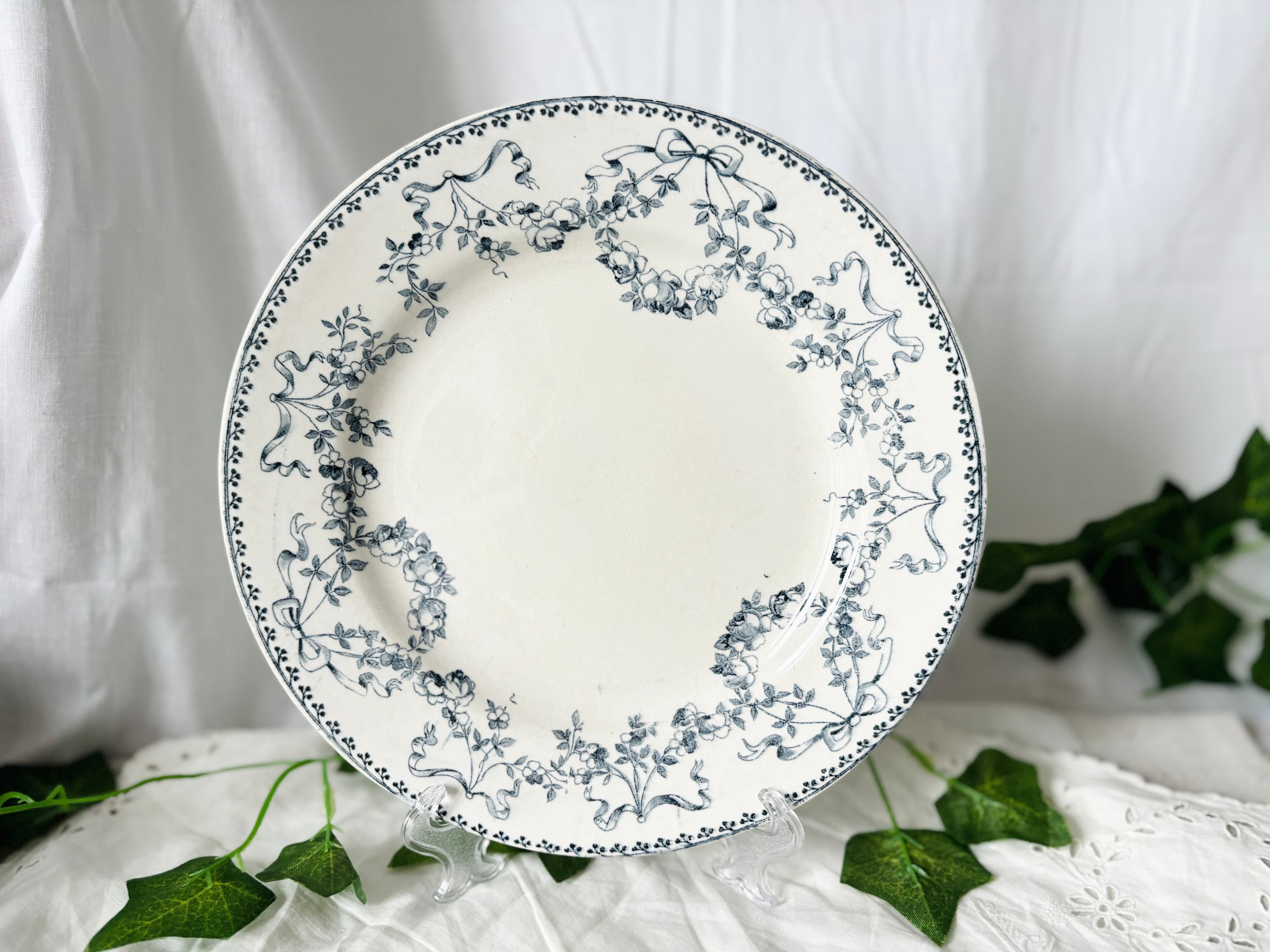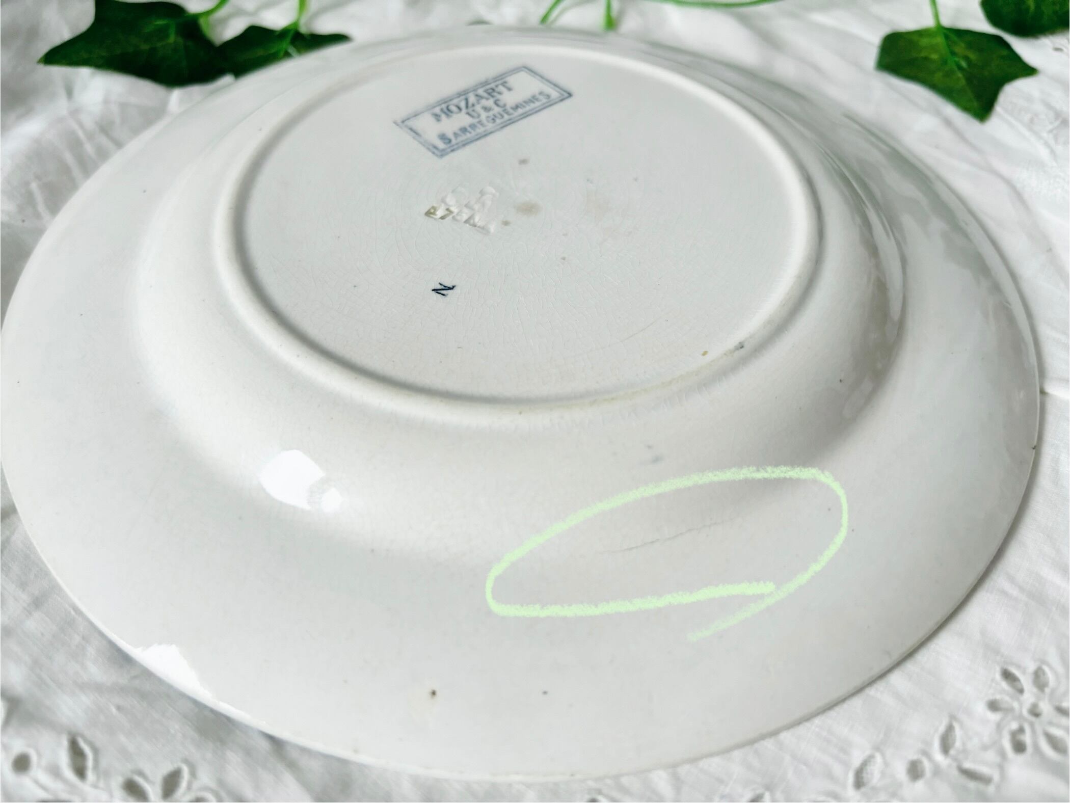 20世紀の初頭のフランスより、U&C, Sarreguemines (サルグミンヌ)、MOZART(モーツァルト)シリーズの半深皿のデザートプレートをご紹介いたします。