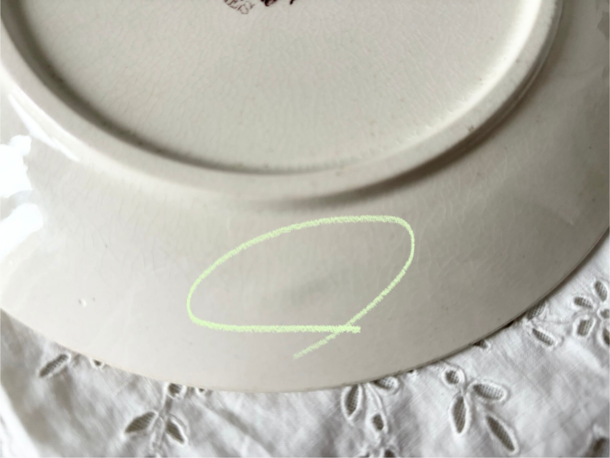 裏から見ると、リムに小傷と、制作時にできたと思われる段差がいくつかございます。刻印が掠れていますが、艶やかで、アンティークとして大変良い状態のお品です。