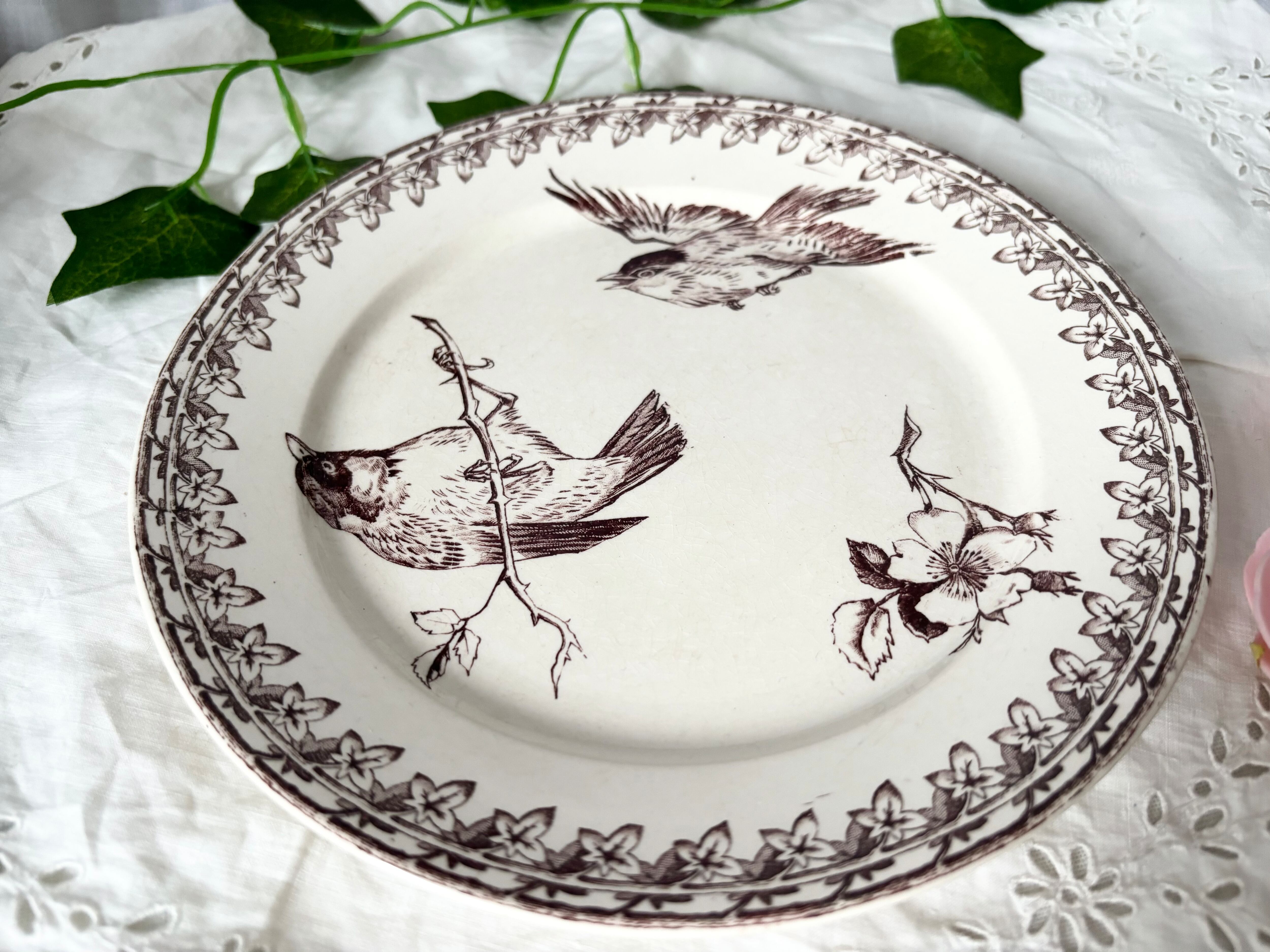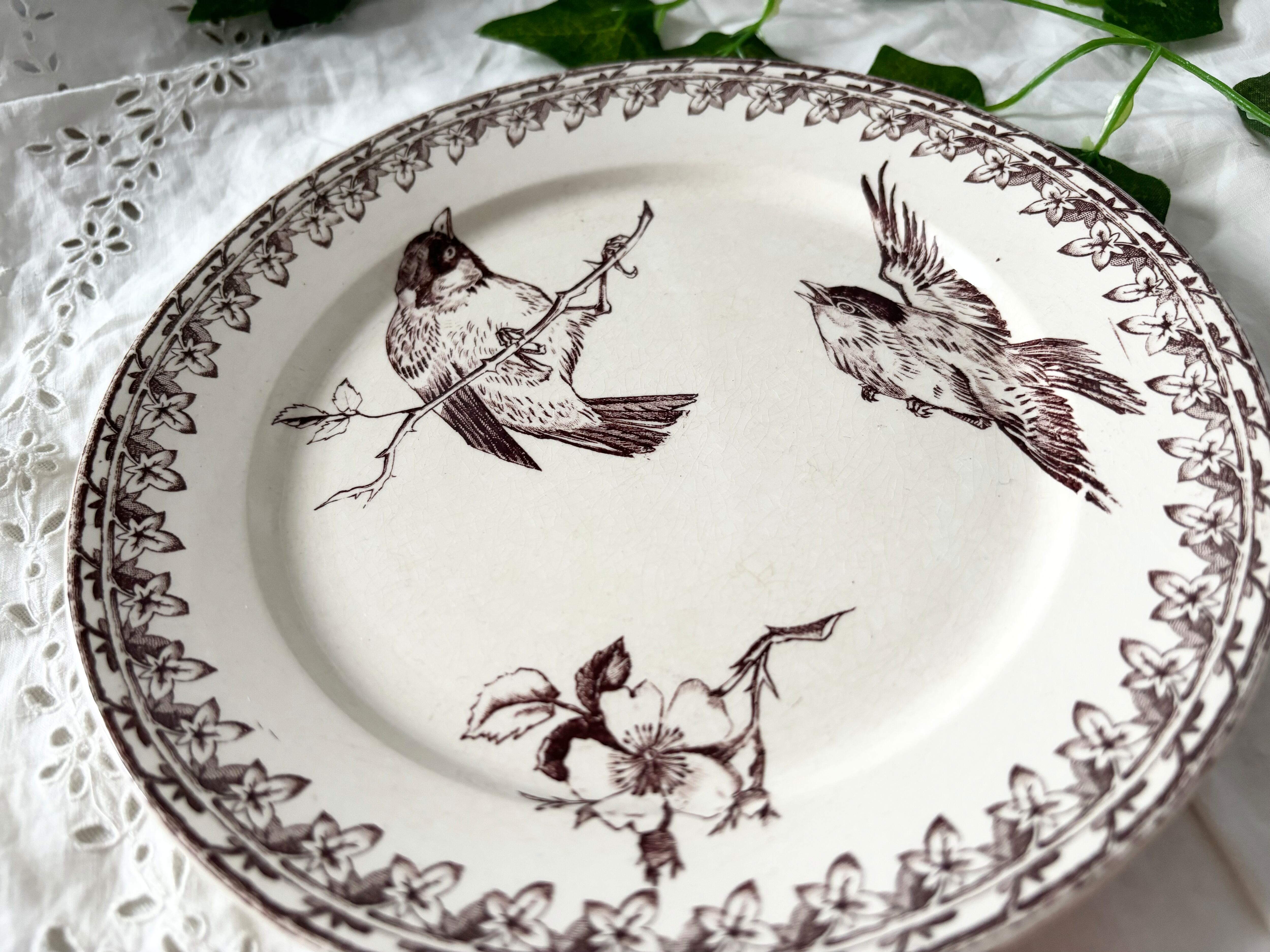O様お取り置き / U&C / サルグミンヌ / BUFFON / デザートプレート / ブラウン / 鳥 / フランス / アンティーク