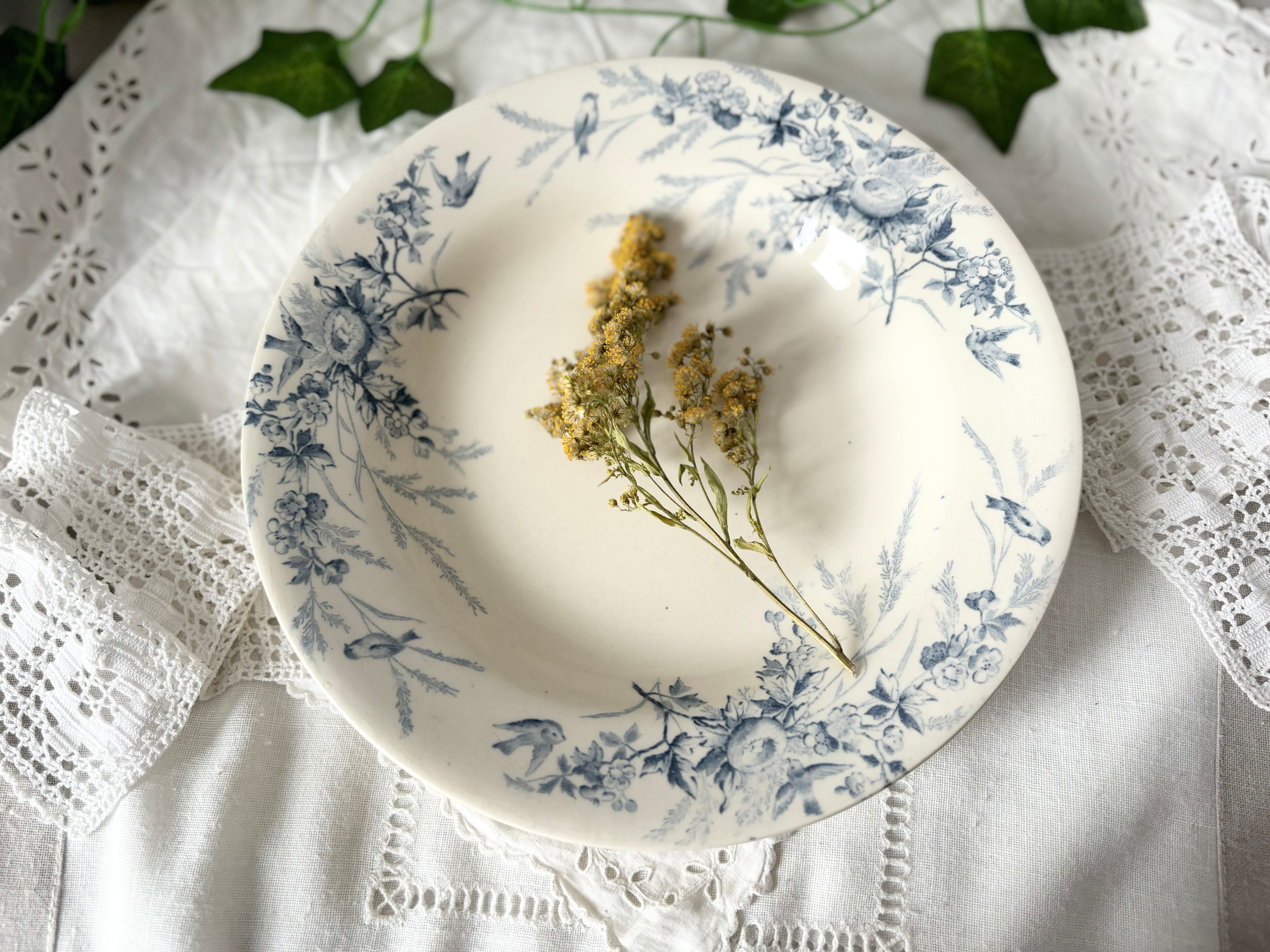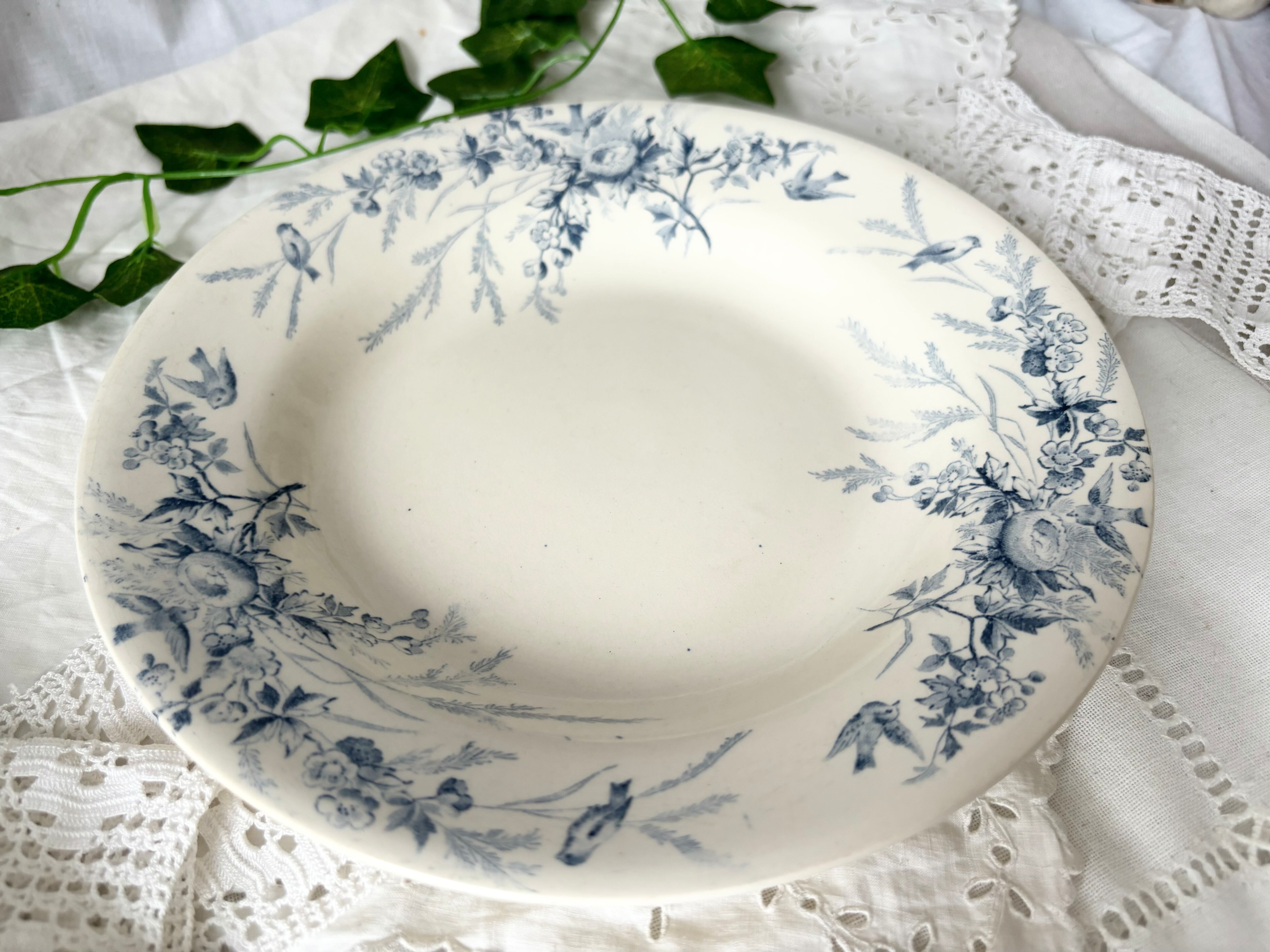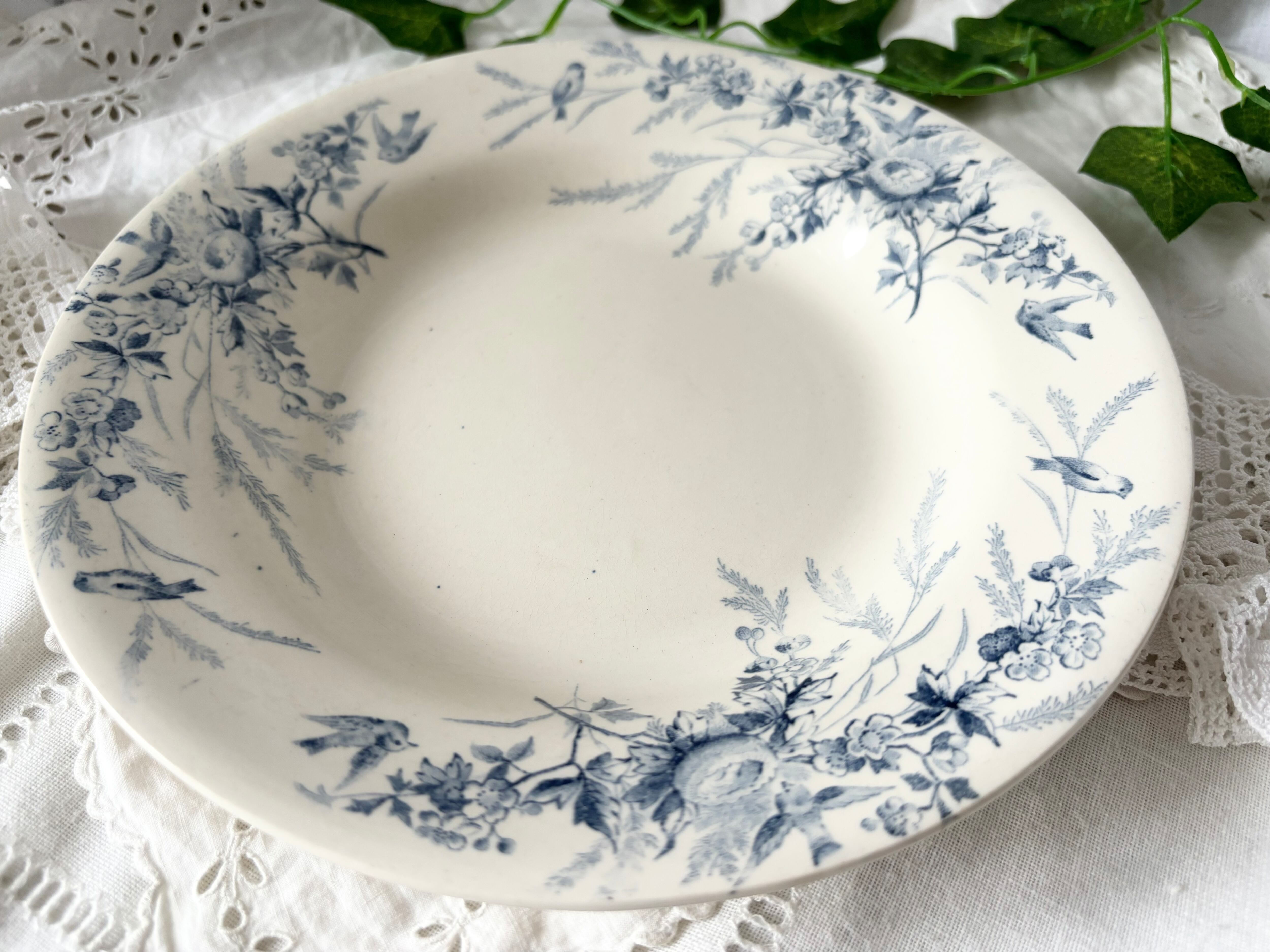 B : Creil et montereau / Linotte / deep plate / 19 century antique / France / bird /クレイユエモントロー / テールドフェール / 深皿 / 鳥