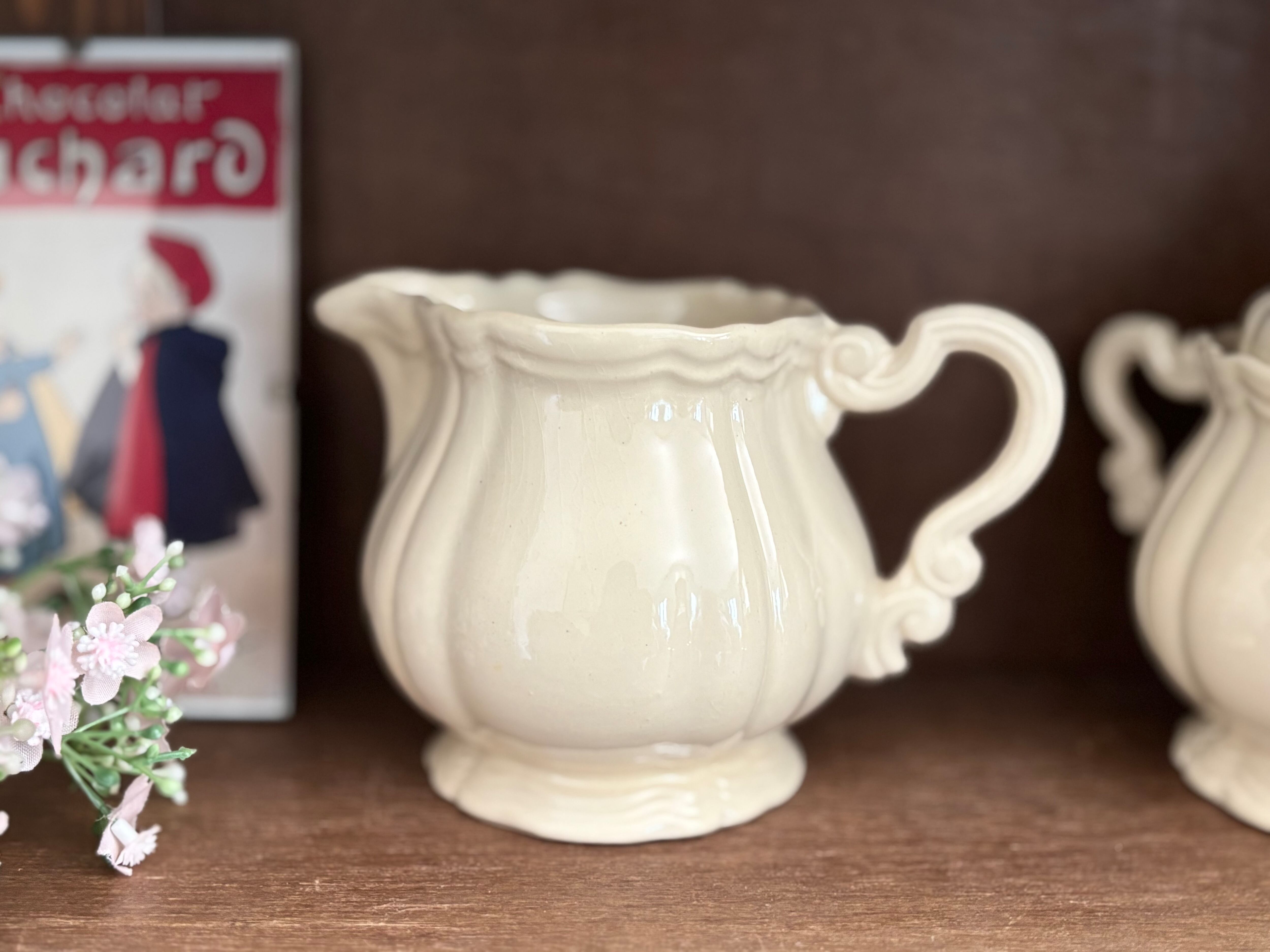 DIGOIN Sarreguemines サルグミンヌ / 花リム / アイボリー / アイボリー / 水差し / スモールピッチャー / ミルクジャグフレンチアンティーク