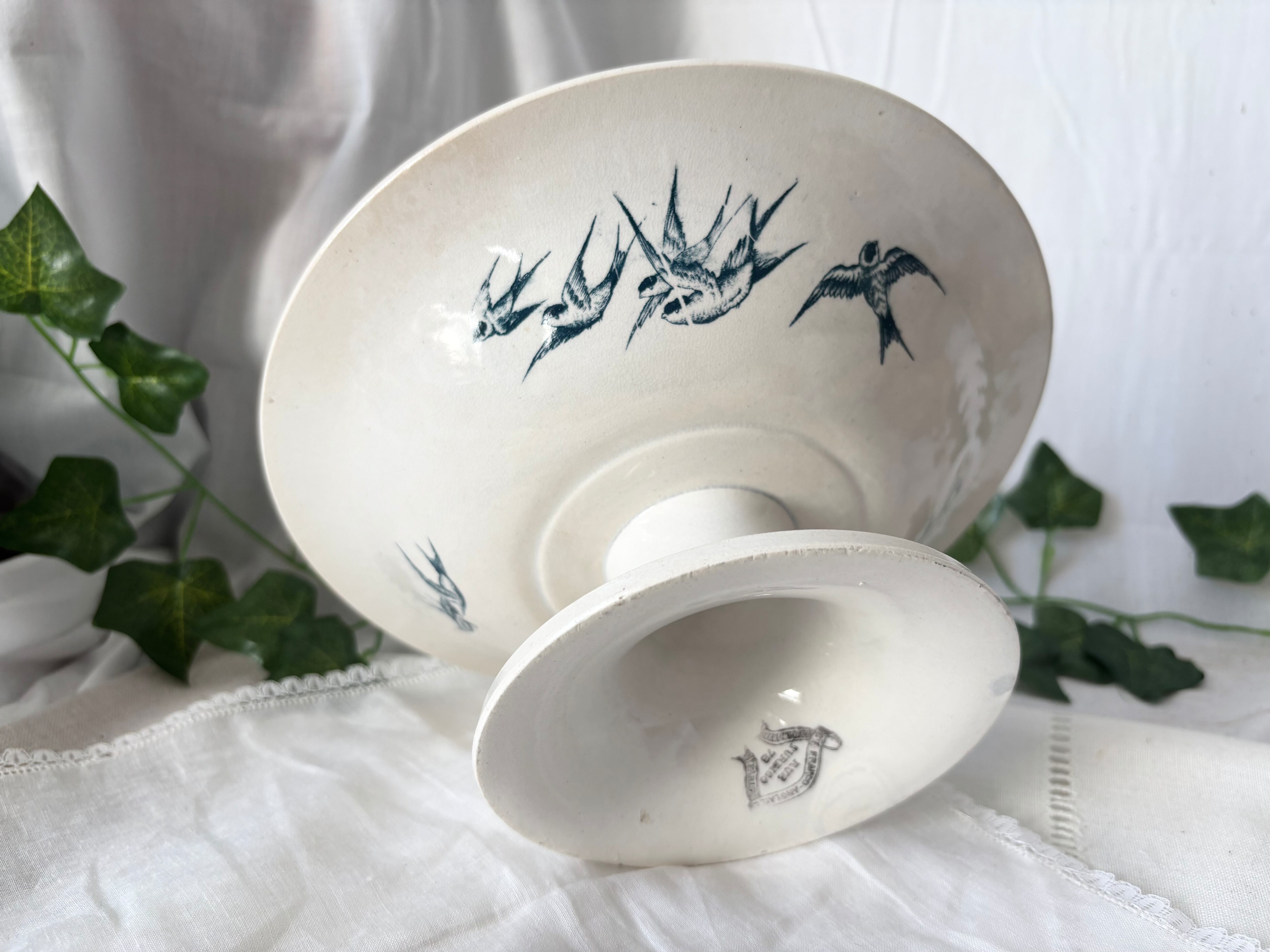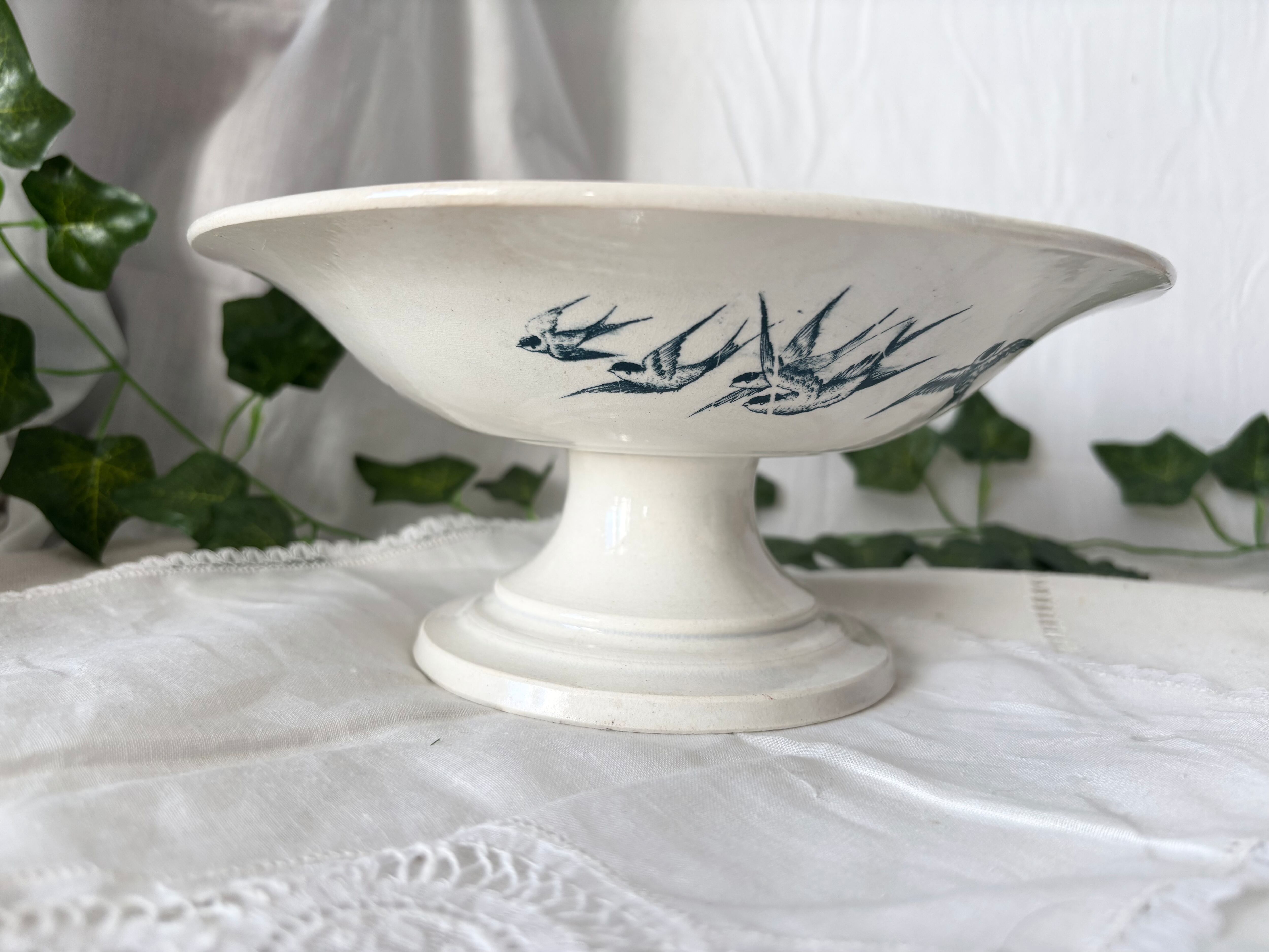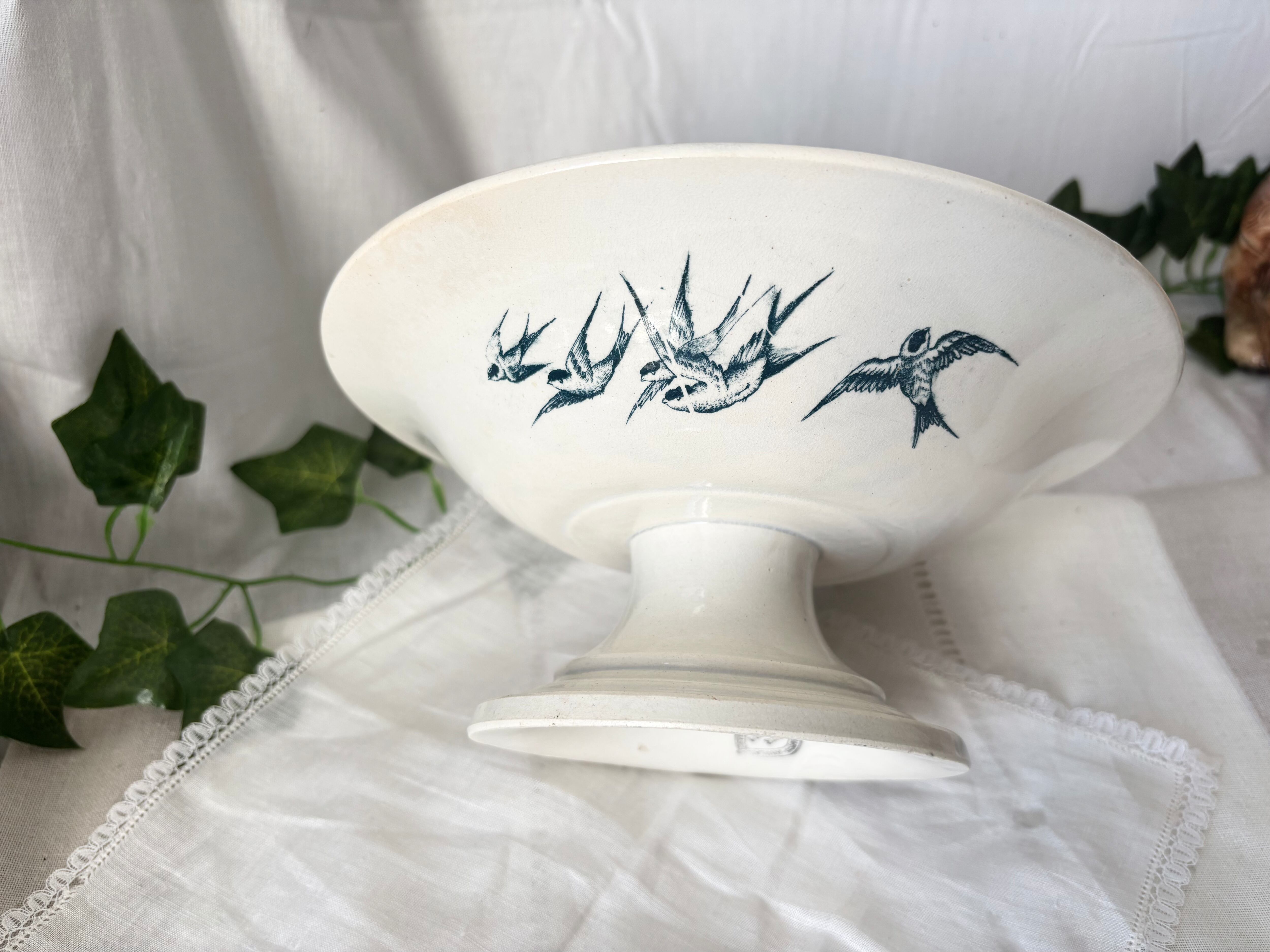 Terre de fer / Compotier / swallow / navy blue / fruits stand / center piece / French antique / Vintage / bird / コンポティエ フランス アンティーク 鳥