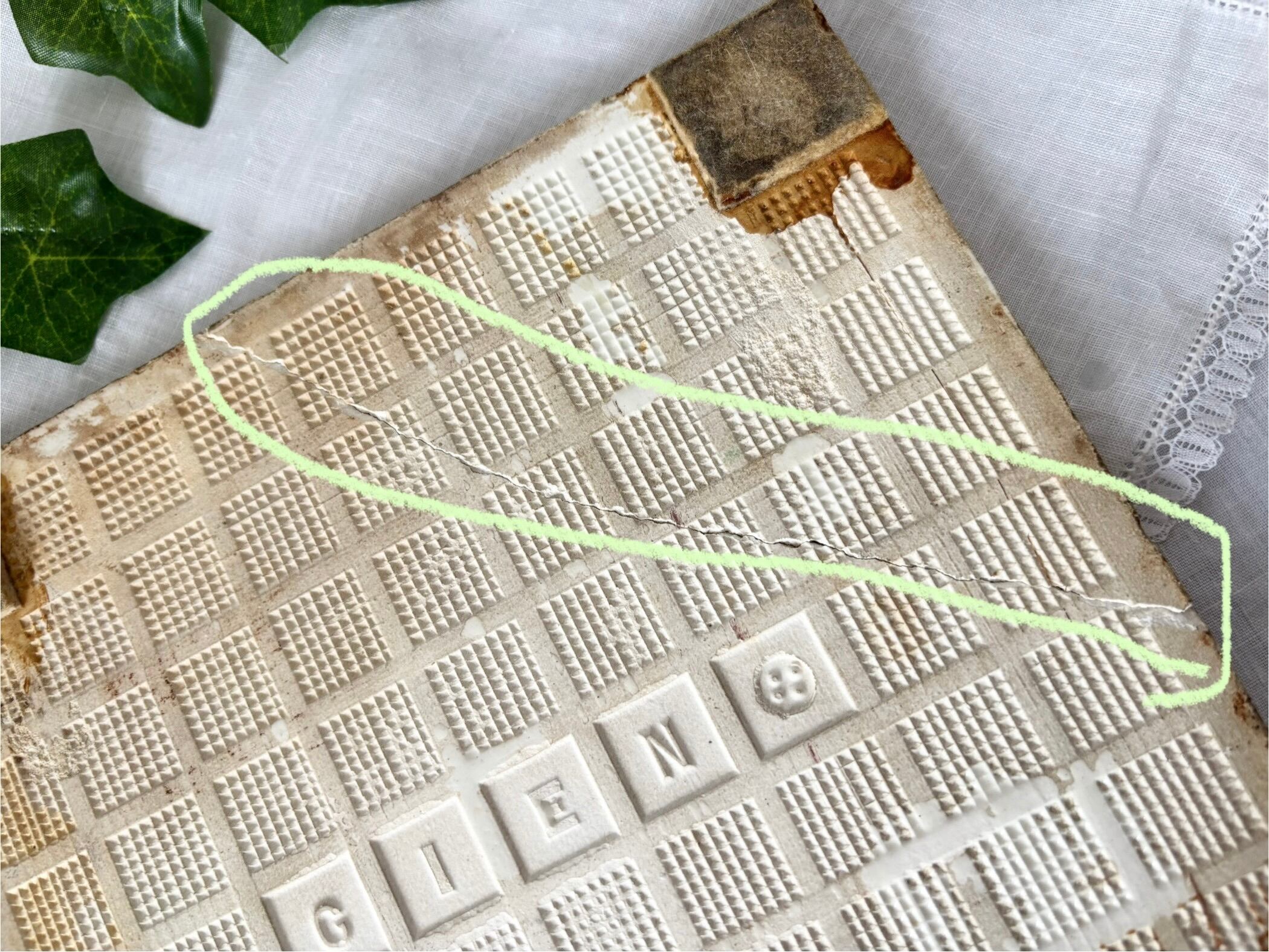 本商品には、一度タイルが割れて、接合した顕著な跡がございます。そのため、重いものを上に乗せる事はお勧めできません。