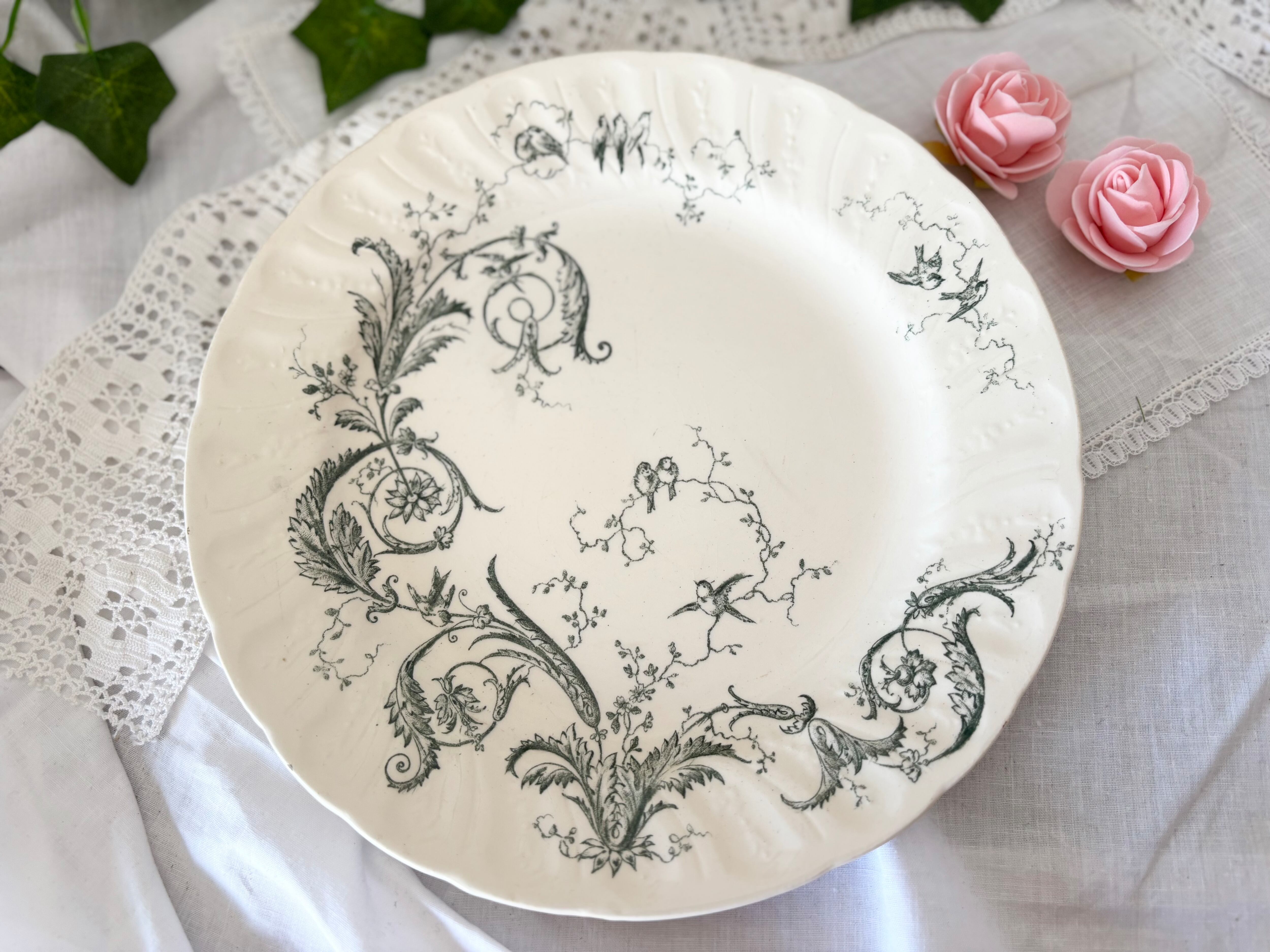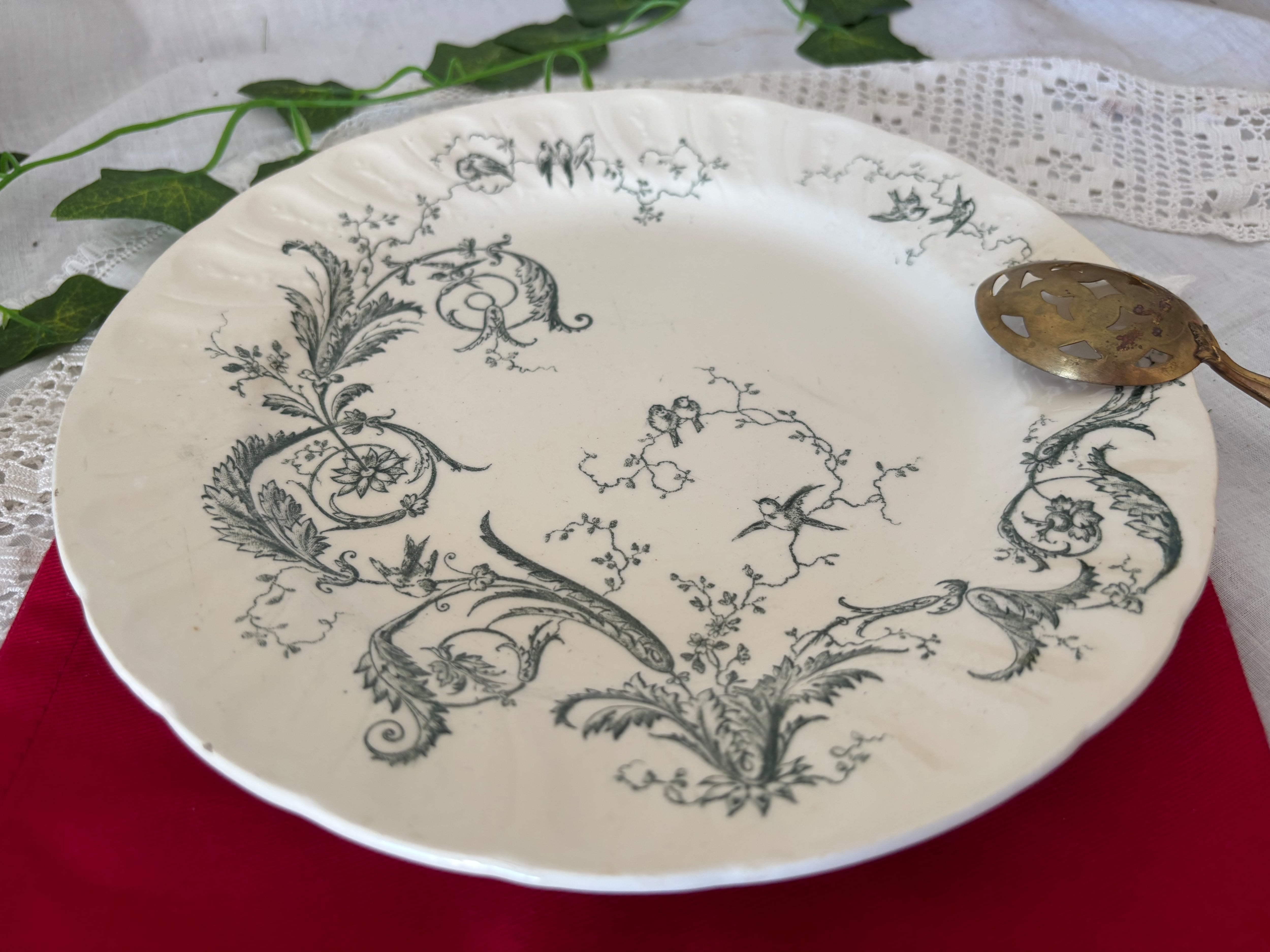 B: GIEN / Rinceaux / 19世紀 / 鳥 / 緑 / ディナープレート / フランス / アンティーク