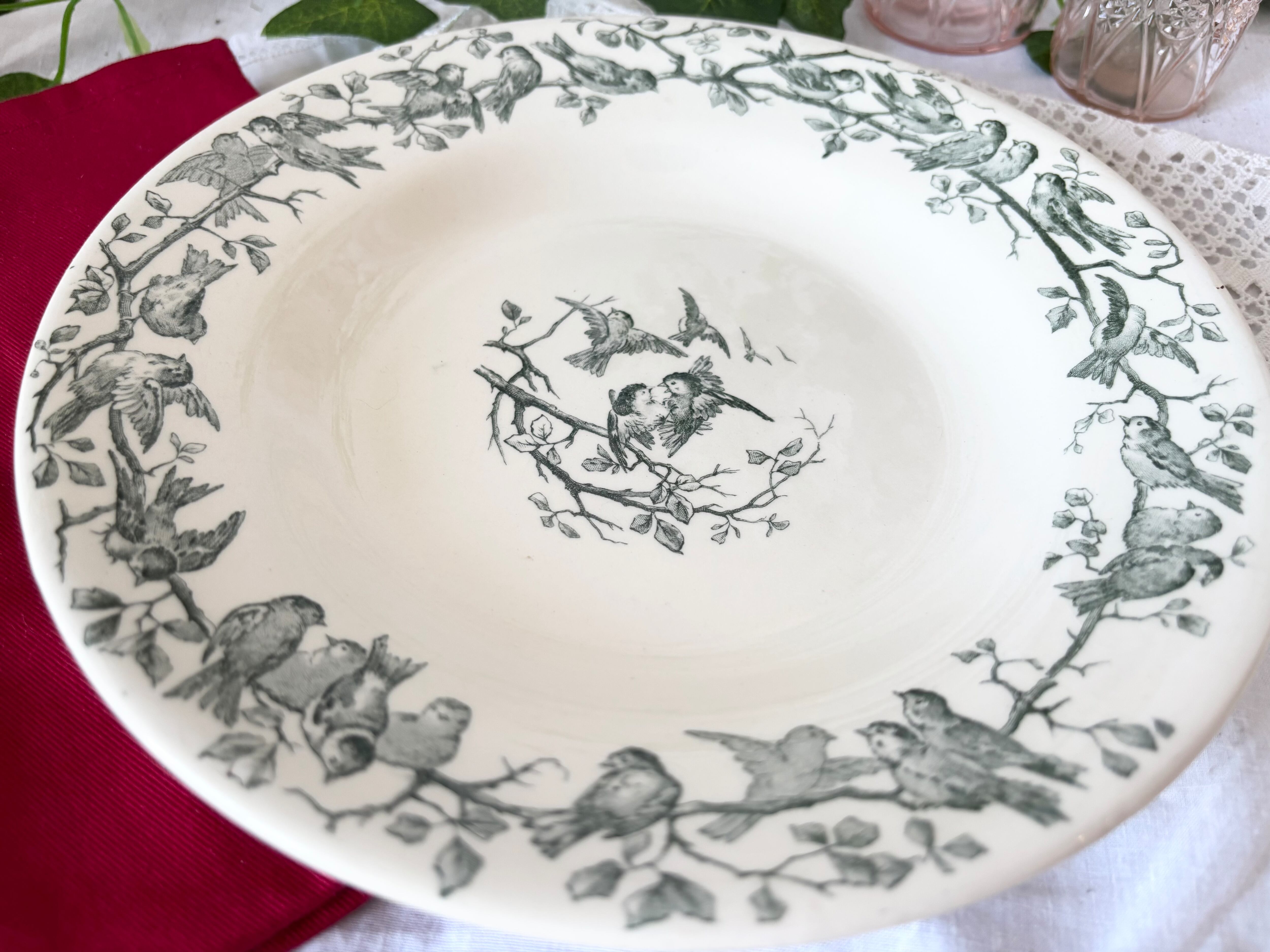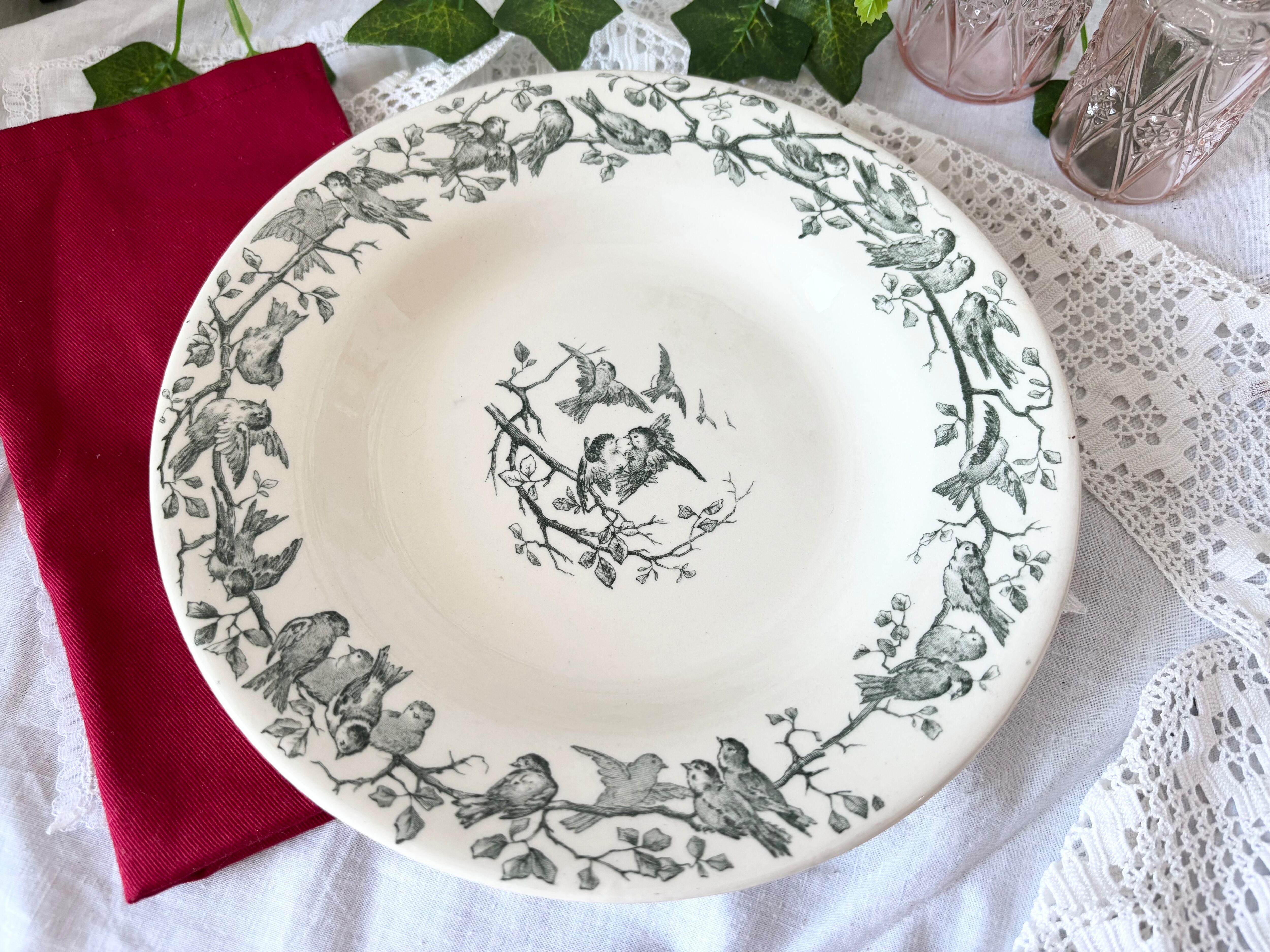 GIEN(ジアン) / AVIARY / 深皿 / 緑 / 鳥 / フランス / アンティーク