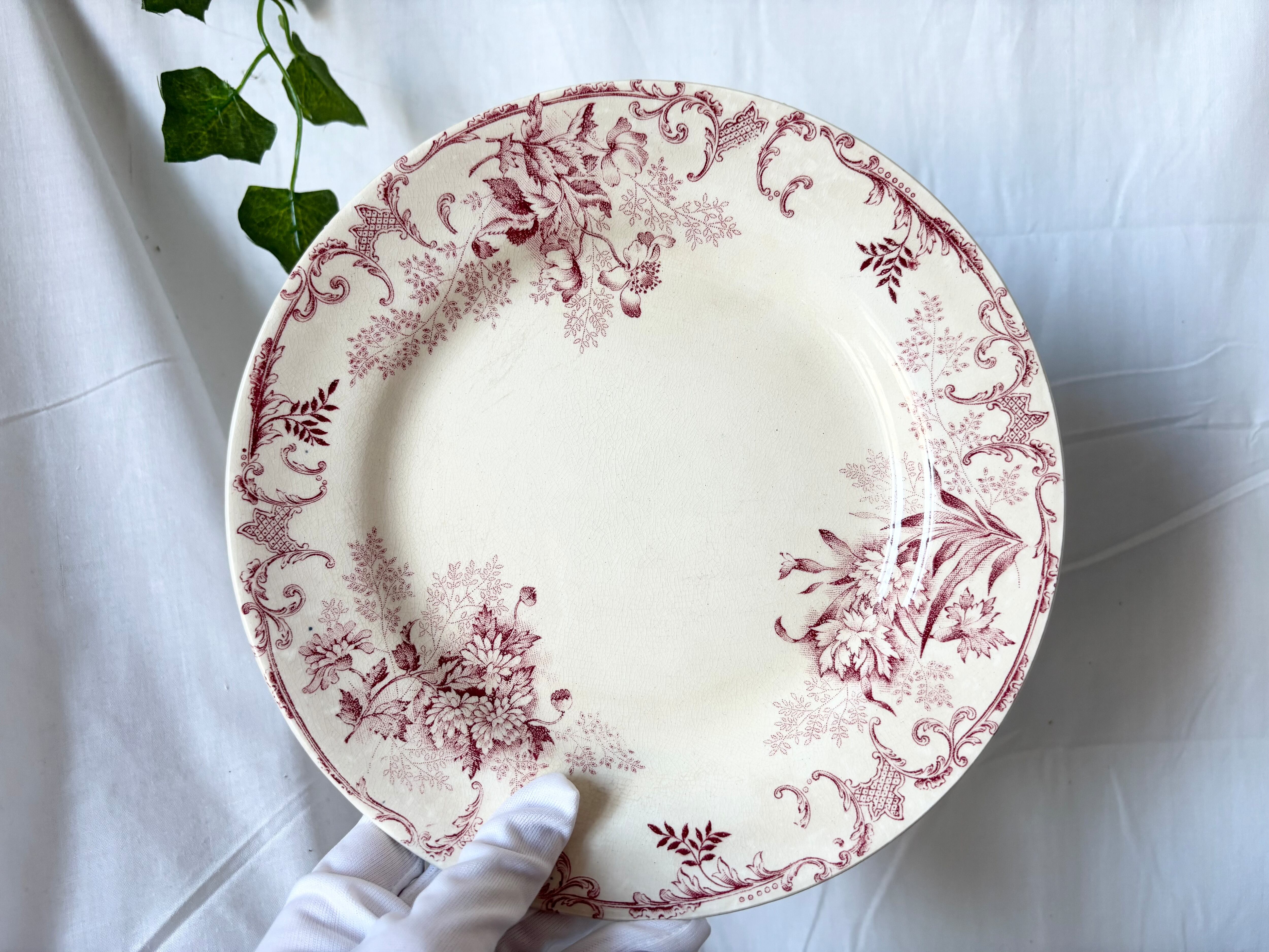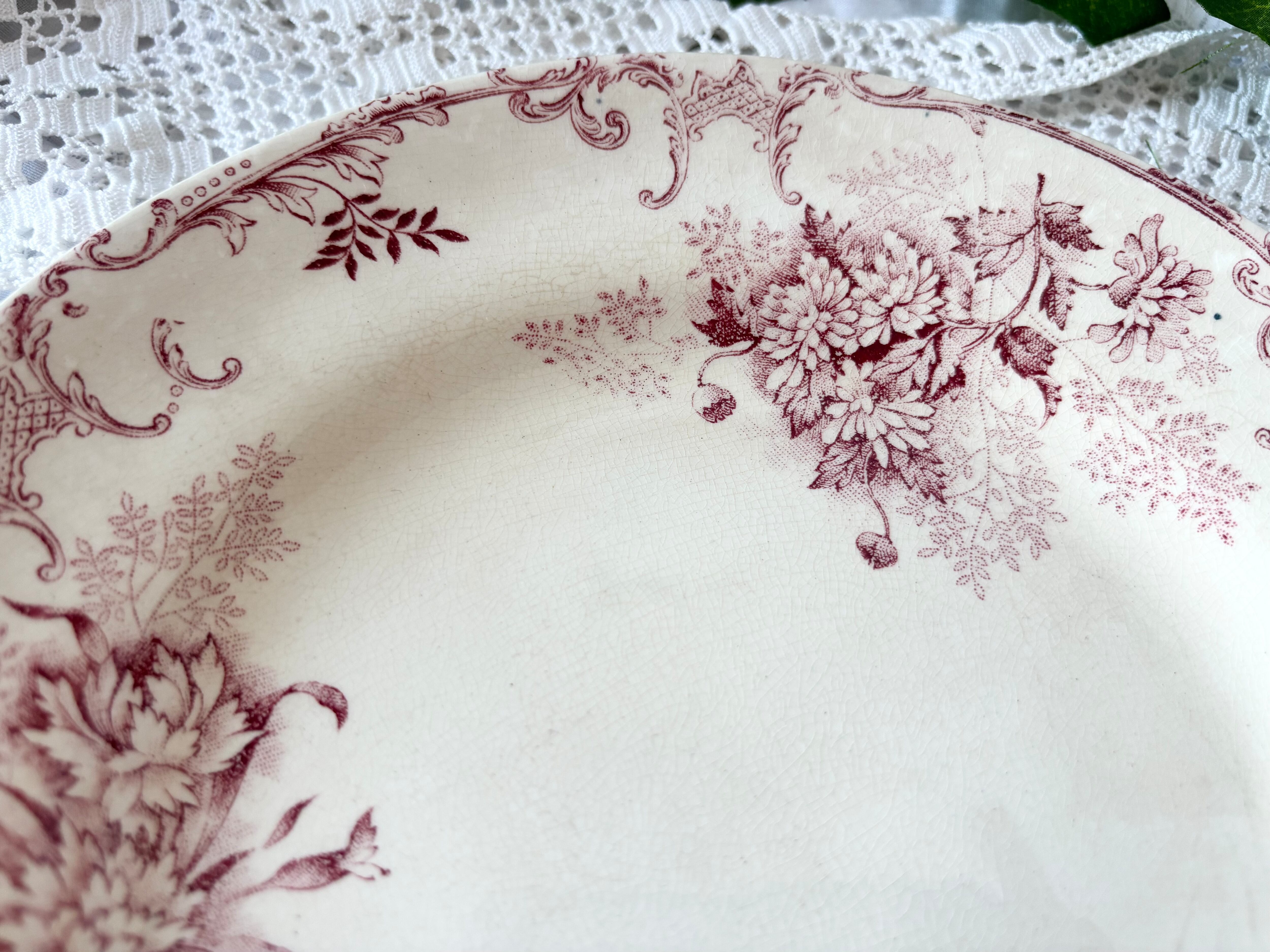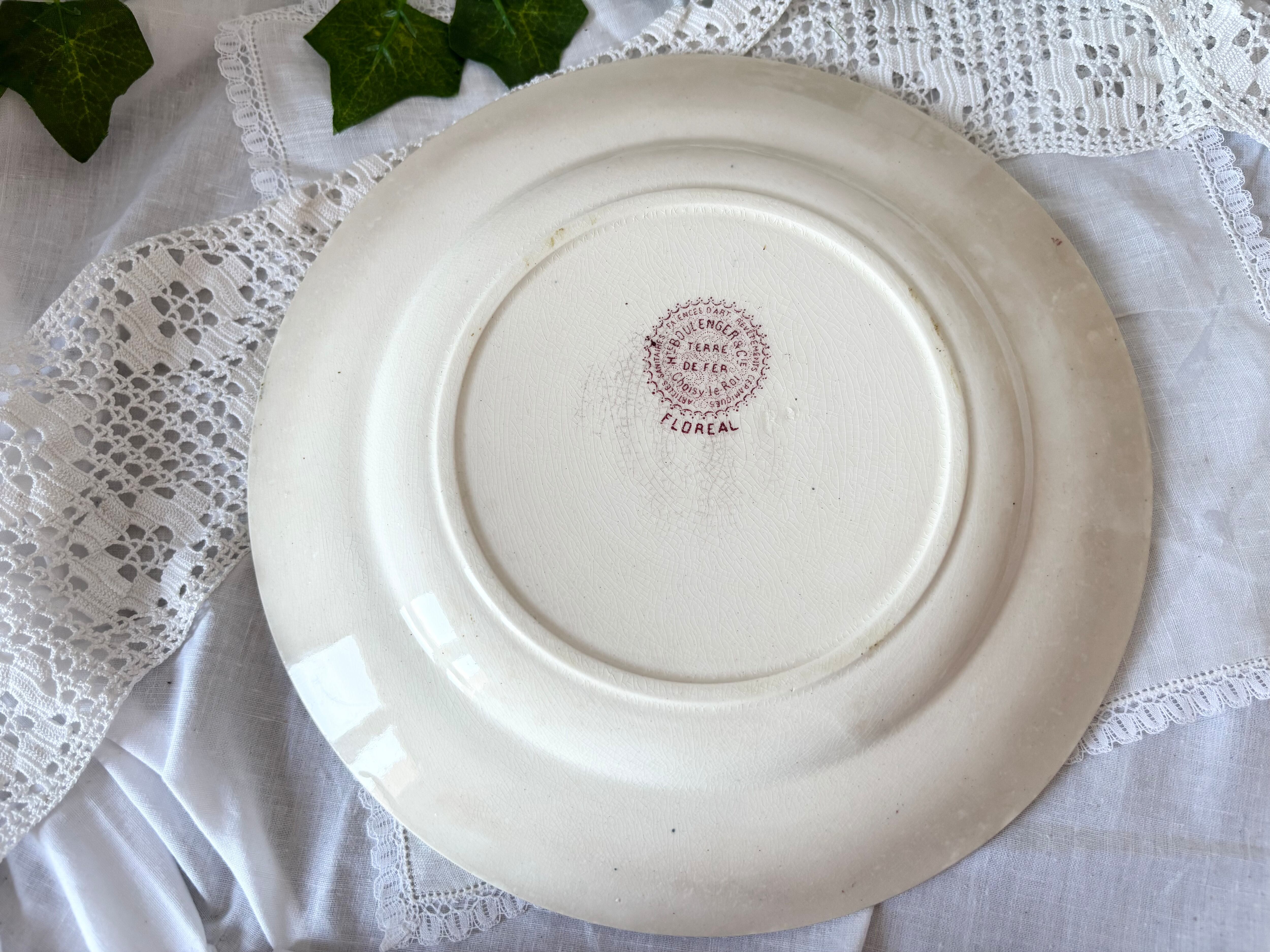 B様お取り置き / B: H.Boulenger & Cie, Choisy le roi / Terre de fer / Floréal / 赤 / ディナープレート /France / Antique/ ショワジールロワ