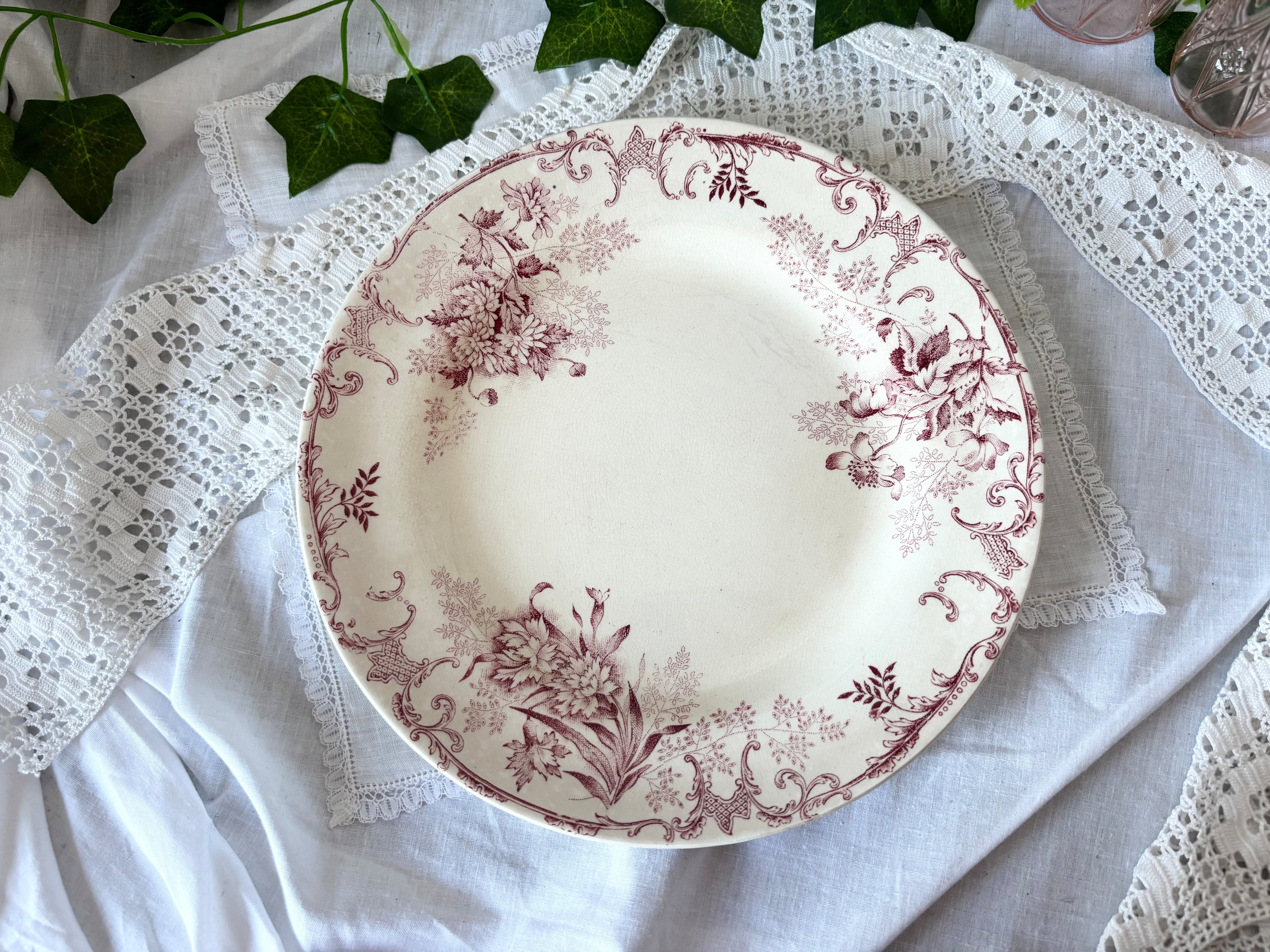 Choisy Le Roi(ショワジールロワ)、Terre de fer のFlorealシリーズより、美しく幻想的な、ワインレッドのディナープレートをご紹介いたします。