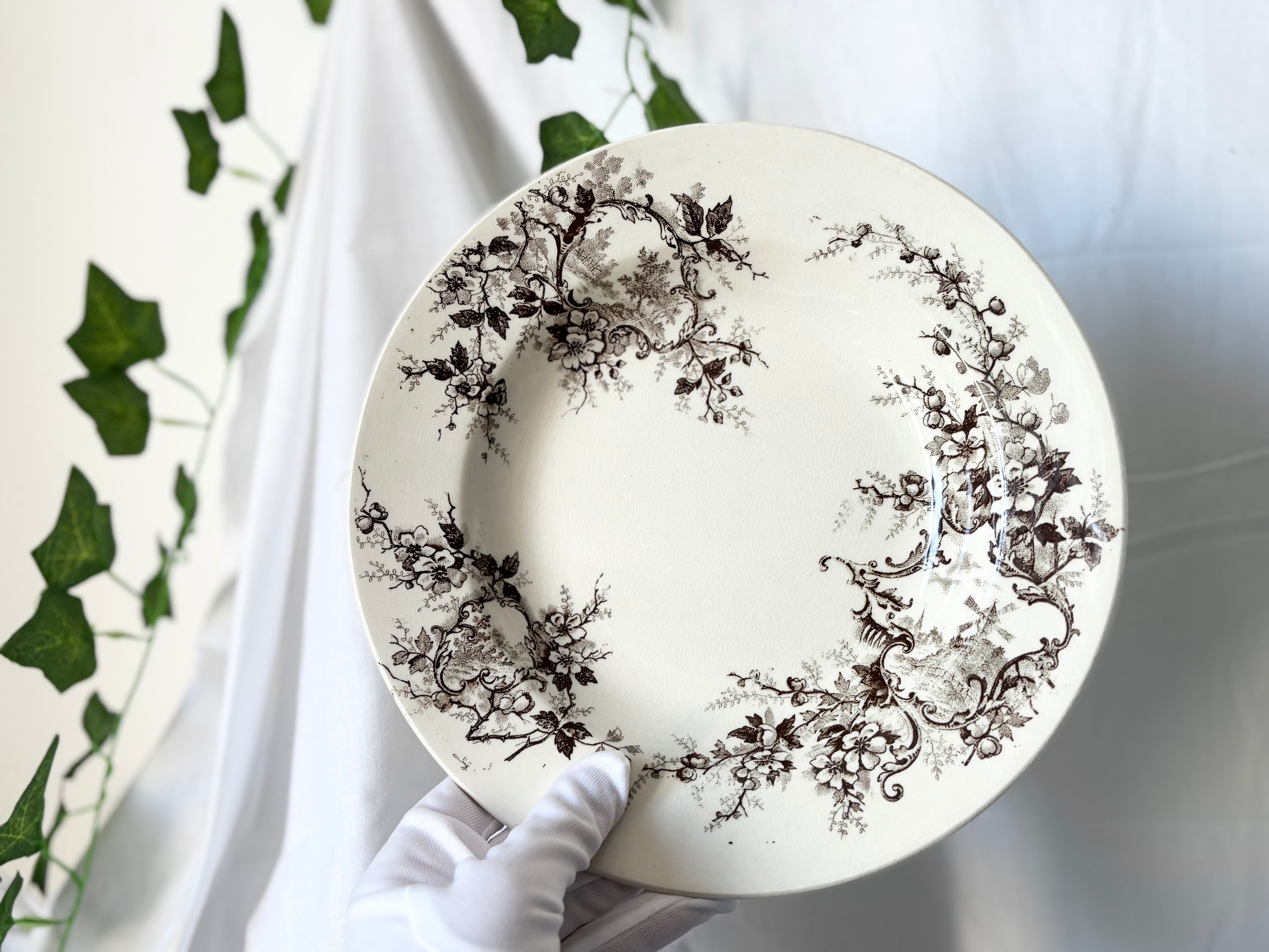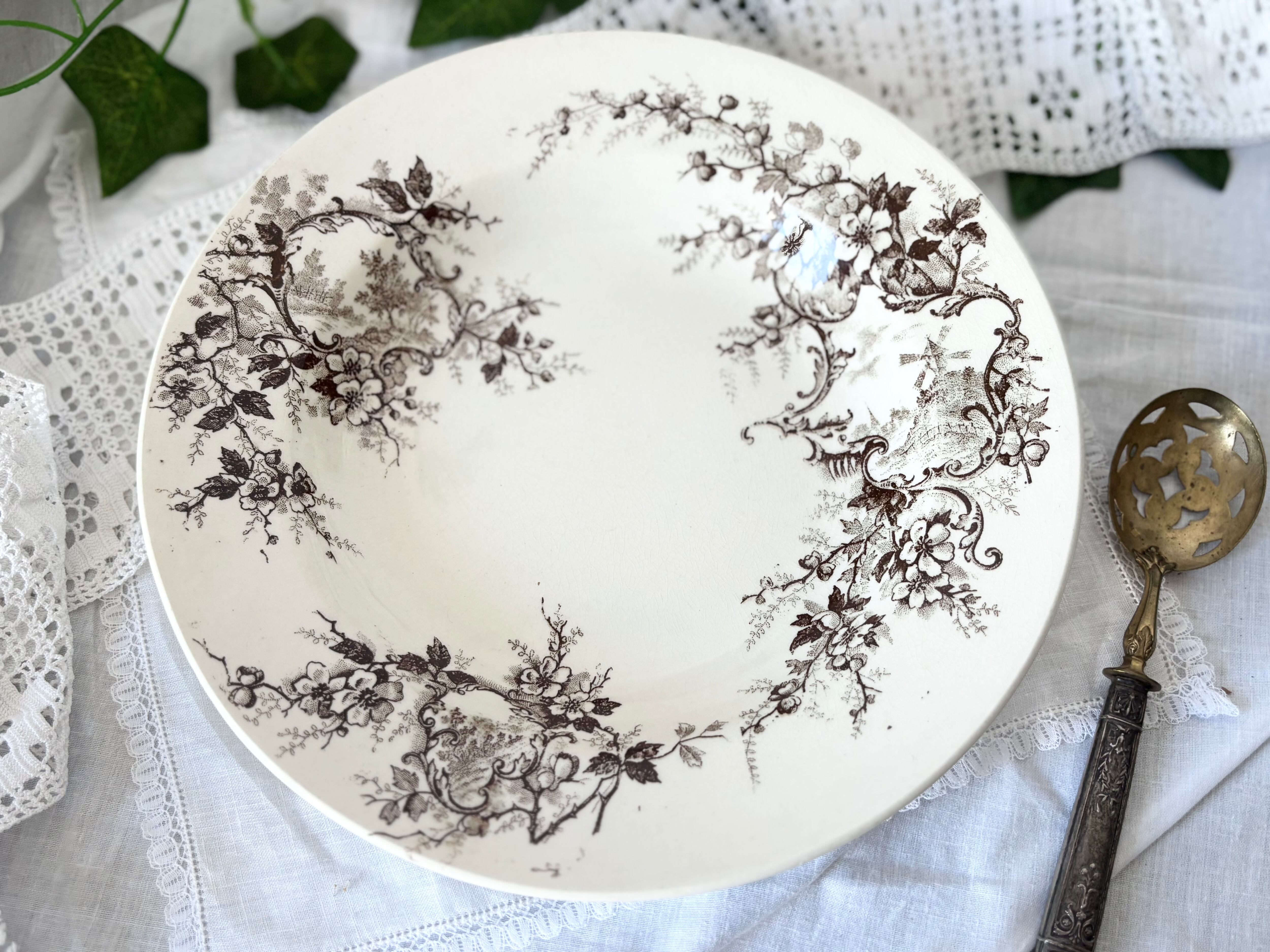 H Boulenger &Cie , Choisy- le-roi / Terre de fer / Pompadour / 深皿 / France / Antique / vintage / ショワジールロワ / ブラウン / フランス/ アンティーク