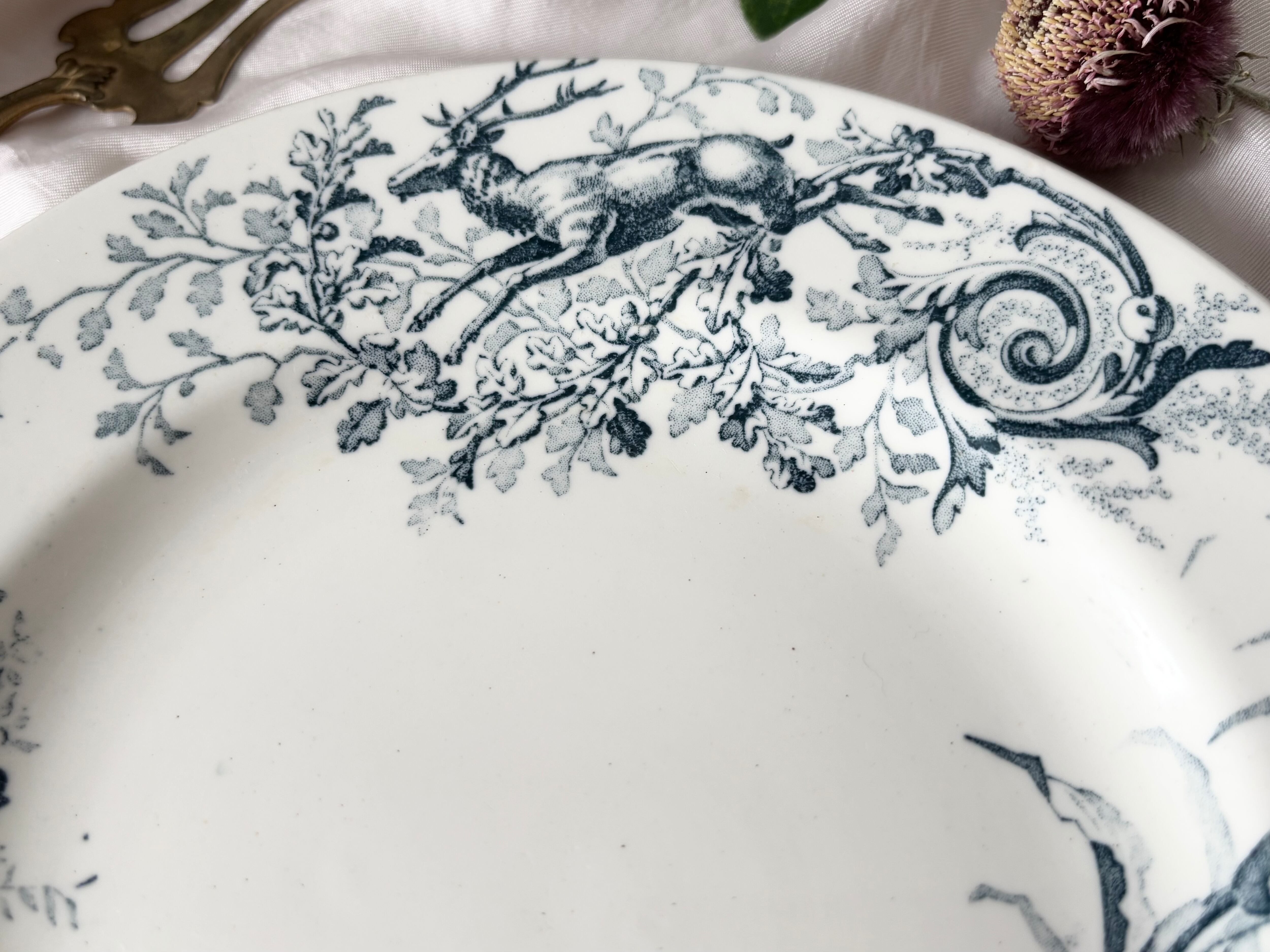 フランス、Lunevilleより、エレガントでゴージャスな、CHASSEシリーズより、青いプレートご紹介いたします。