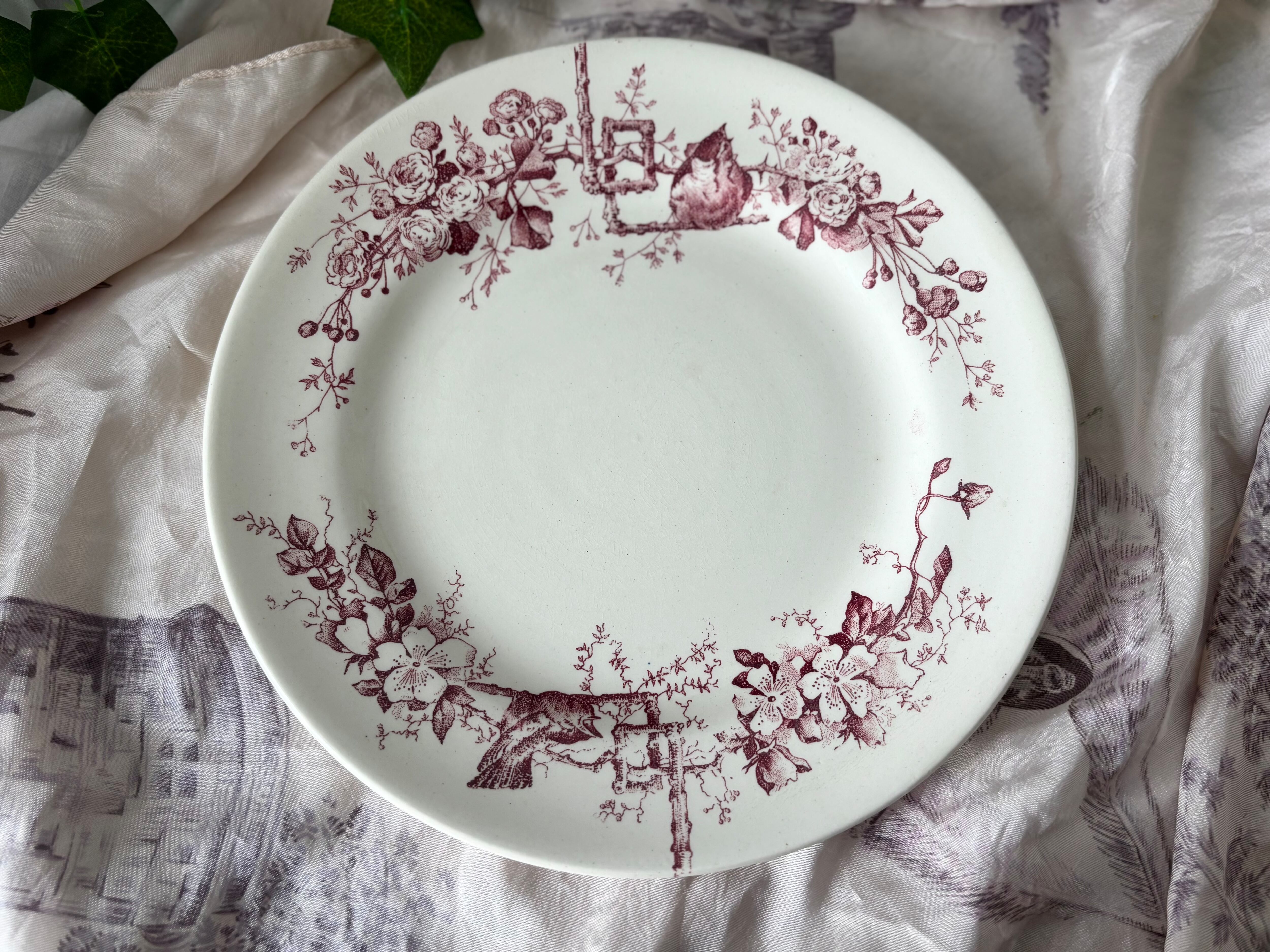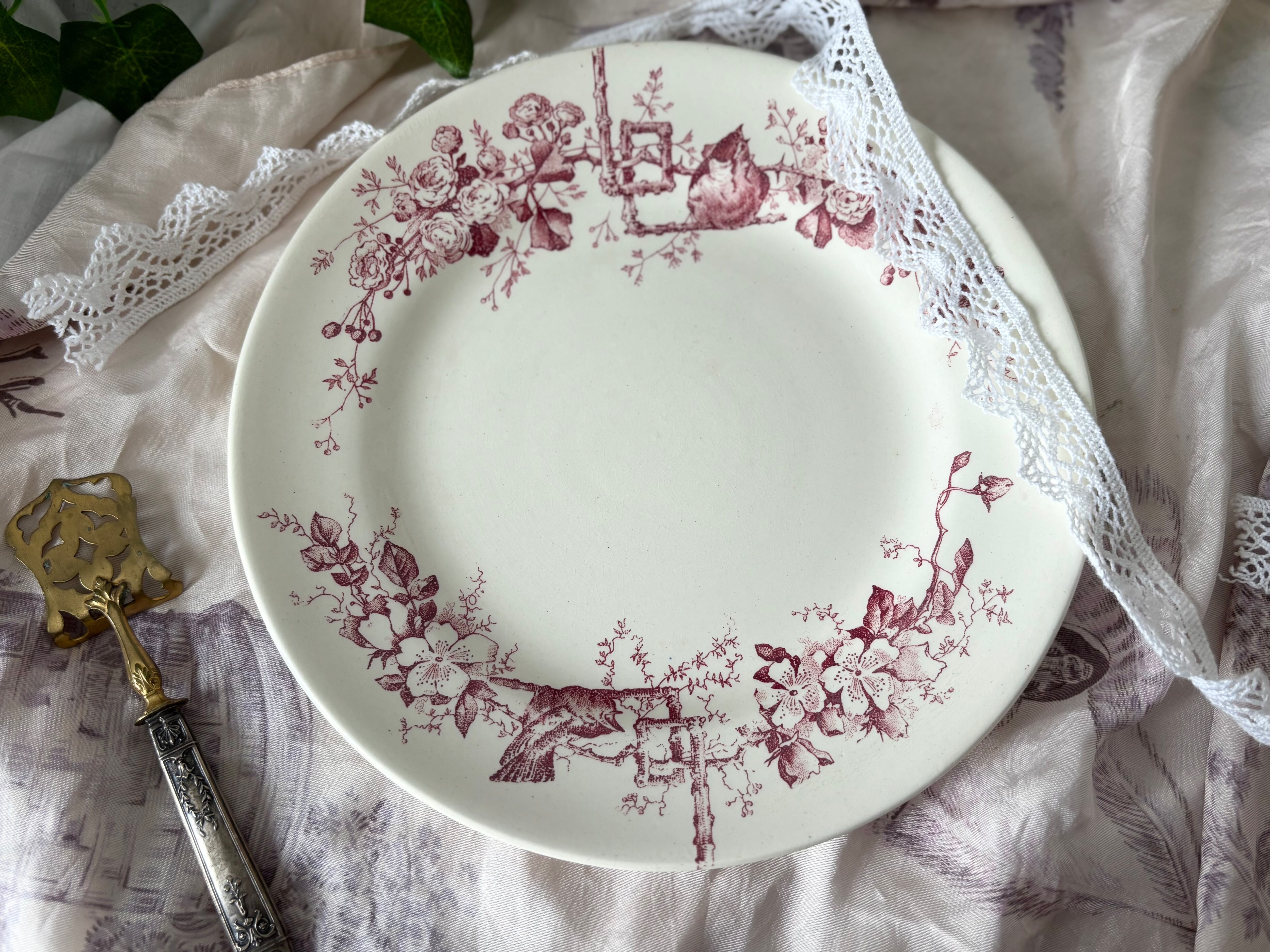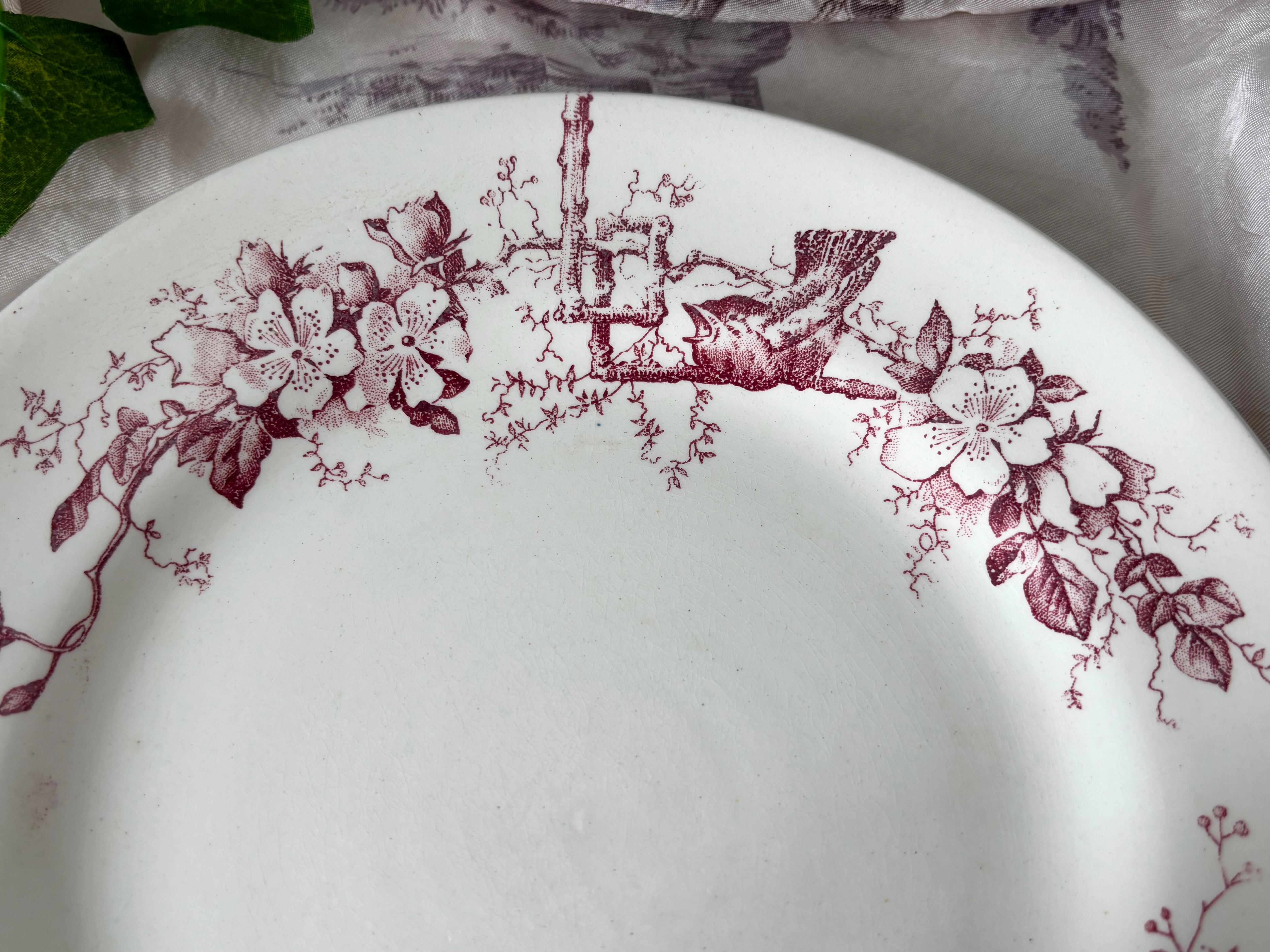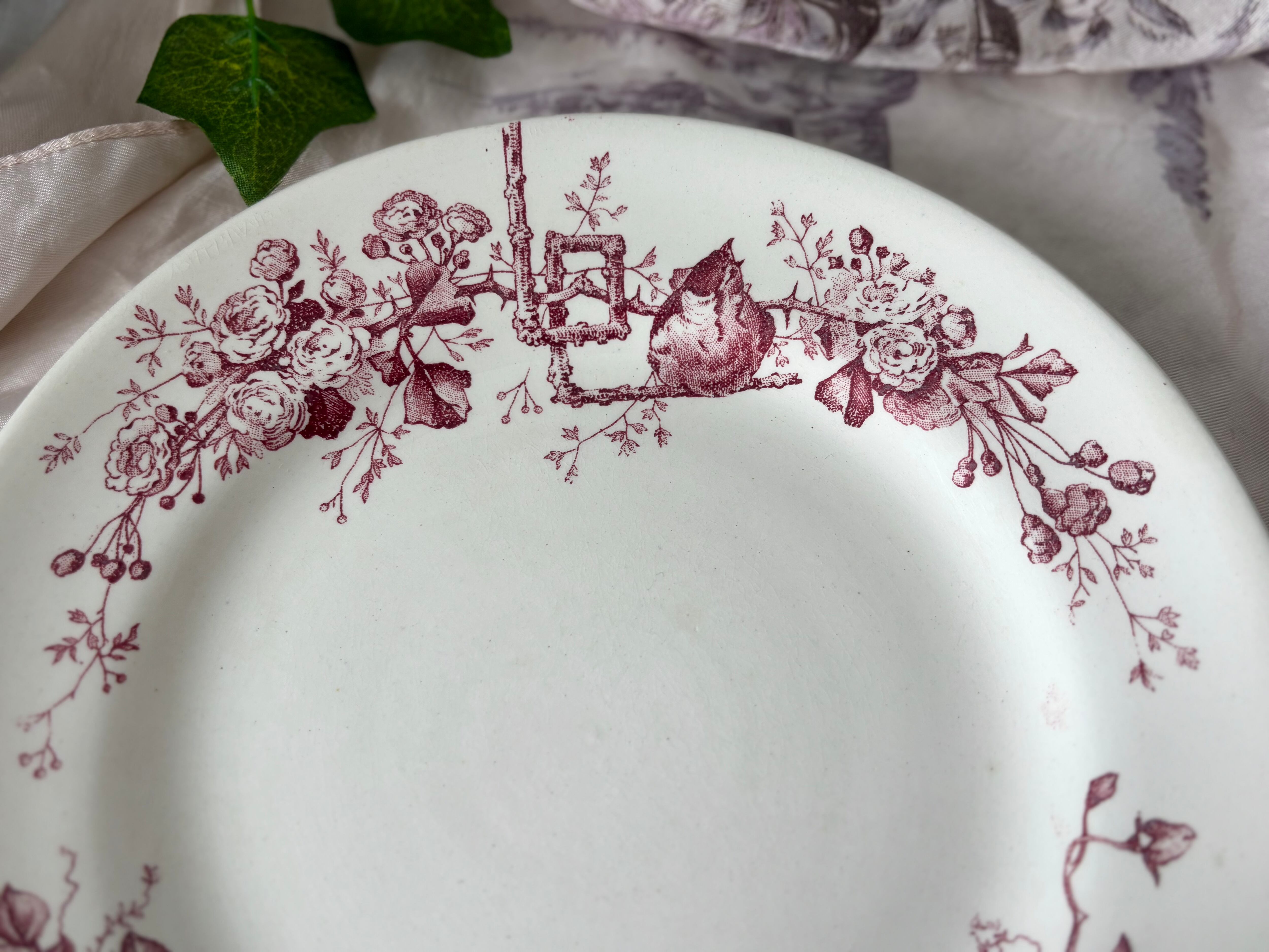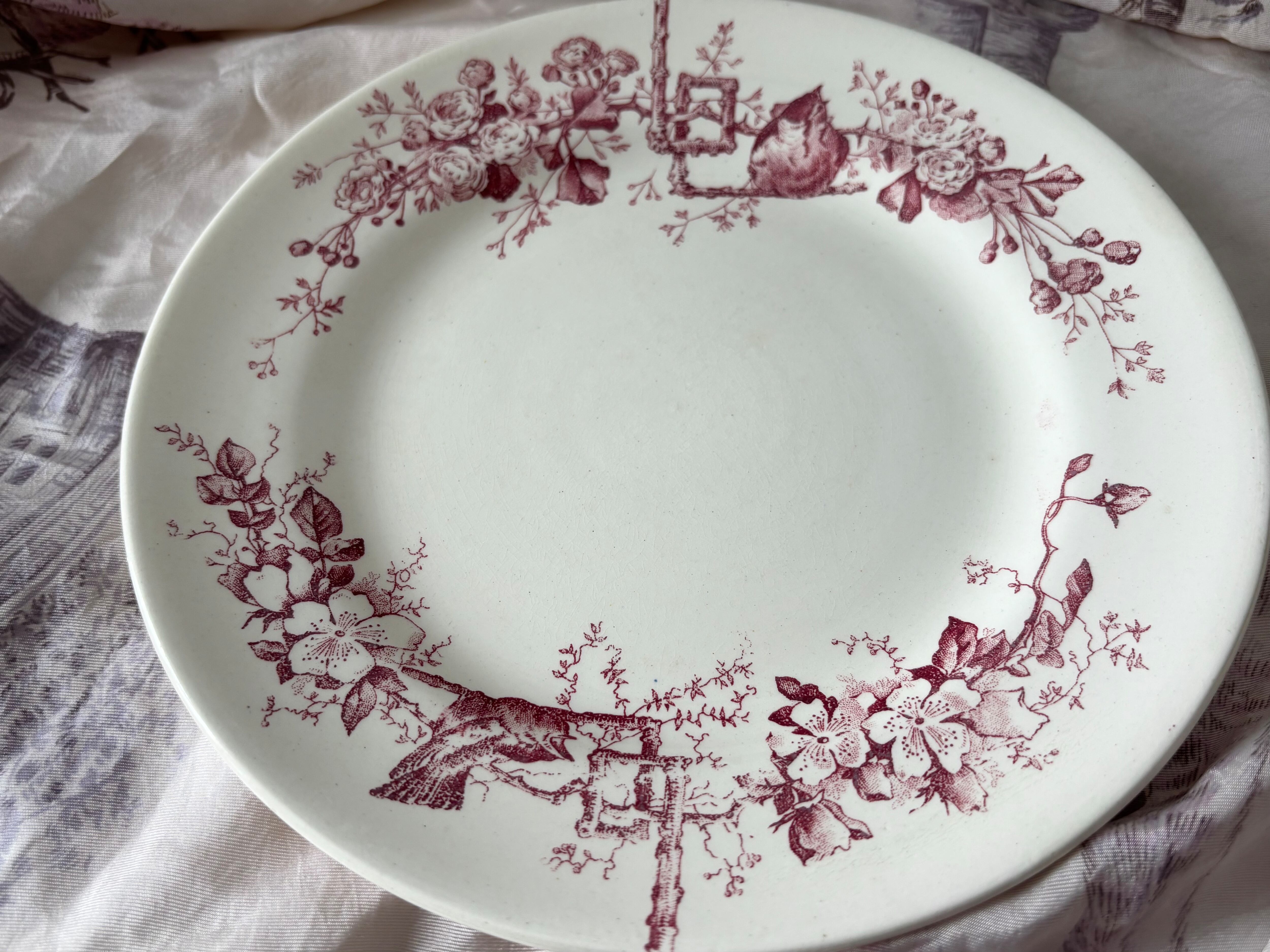 C: Grand Dépôt E. BOURGEOIS / France / 赤い小鳥 のディナープレート / フランス / アンティーク /
